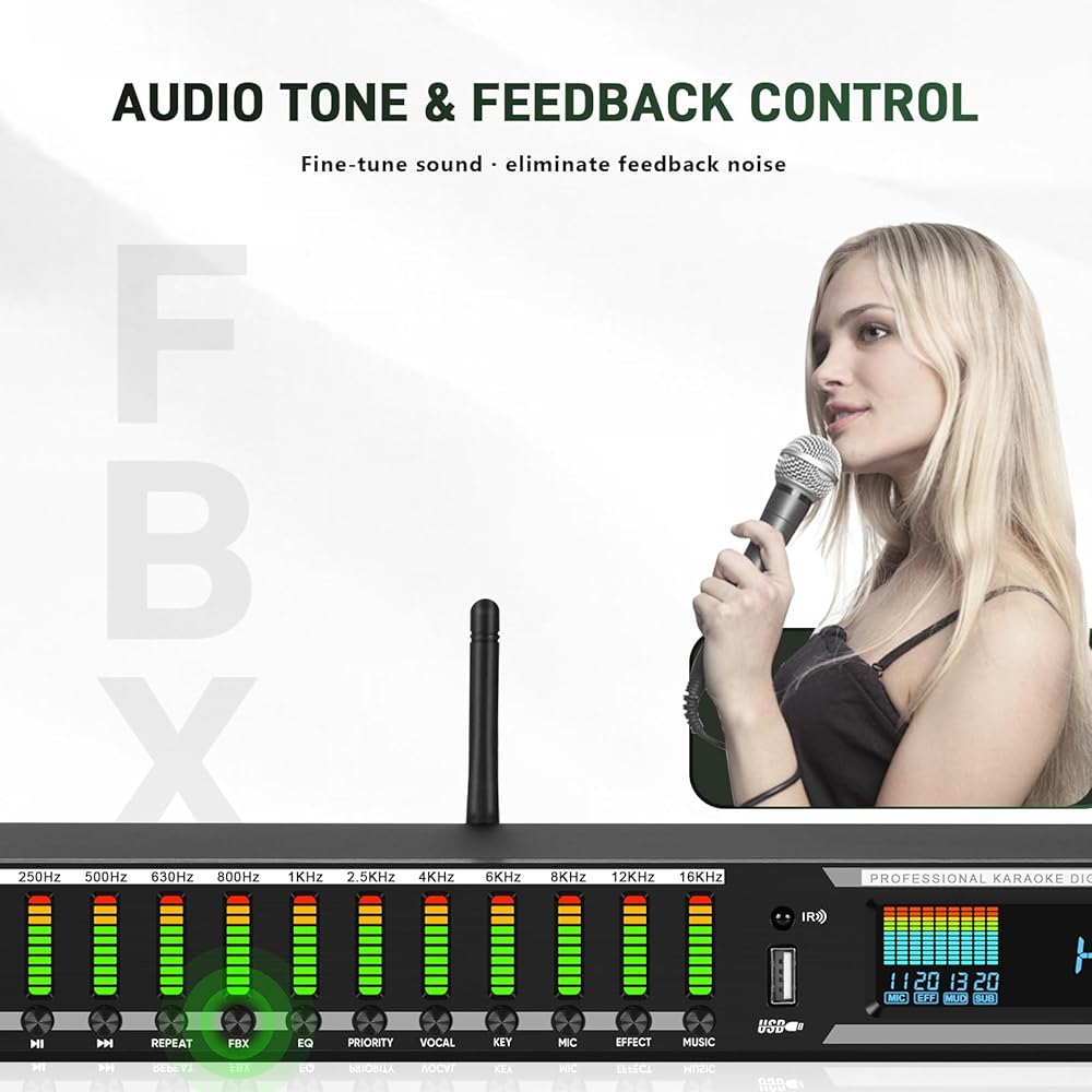 DSP Digital Processing for Clean, Powerful Sound: Equipped with advanced DSP digital audio processing, delivering cleaner vocals, richer sound, and reduced noise. Multi-section audio effect adjustment ensures accurate tuning, while intelligent feedback suppression keeps your performance stable and noise-free.