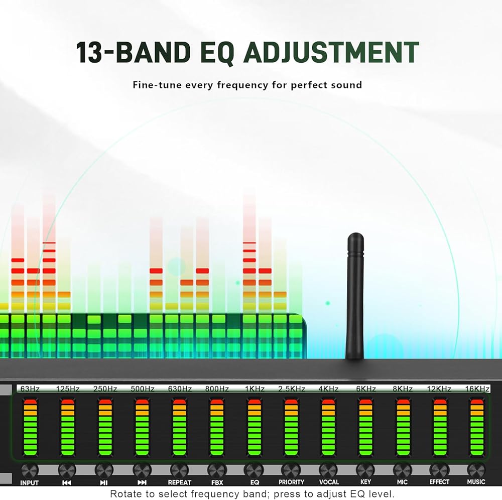 One-Touch Vocal Enhancement & Mic Priority: Enhance your voice instantly with One-Touch Vocal Enhancement, Mic Priority, and One-Touch FBX Suppression. Achieve professional vocal clarity with key shifting, echo/reverb, and precise 13-band EQ tuning for singing, hosting, or live streaming.