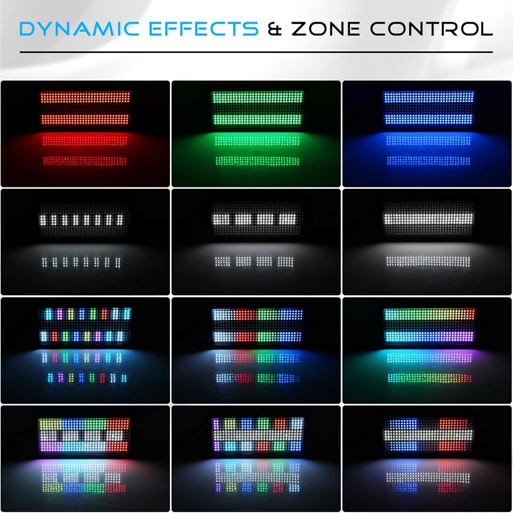 Controllable Zones: The DJ light can be controlled in DMX mode with zones, RGB LED 32 segments, White LED 16 segments, both are 8 led beads as a pixel, and each pixel can be controlled individually. Choose from 85 built-in effects to tailor your lighting for any occasion.