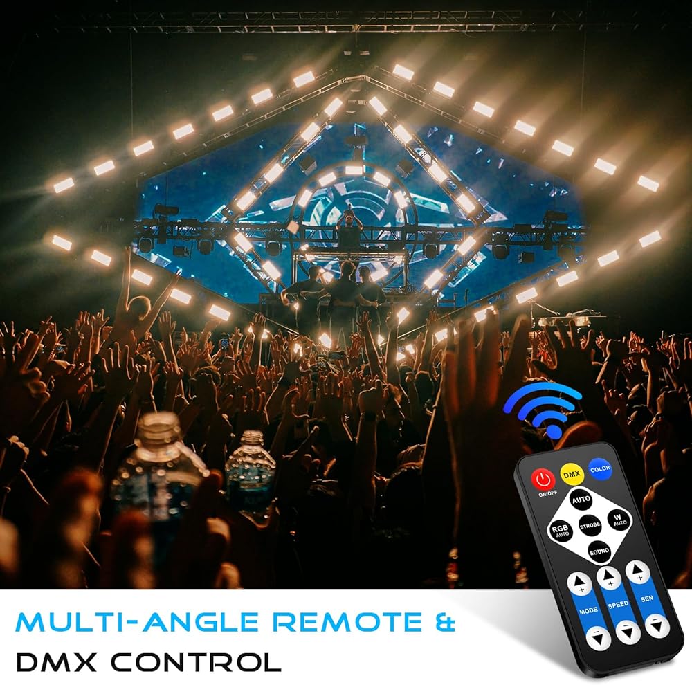 Multiple Control & Mode: Use the remote for quick and simple operation, or switch to DMX512 for full professional programming. Enjoy versatile modes to create stunning effects, adjust static colors brightness, strobe speed, and sound sensitivity.