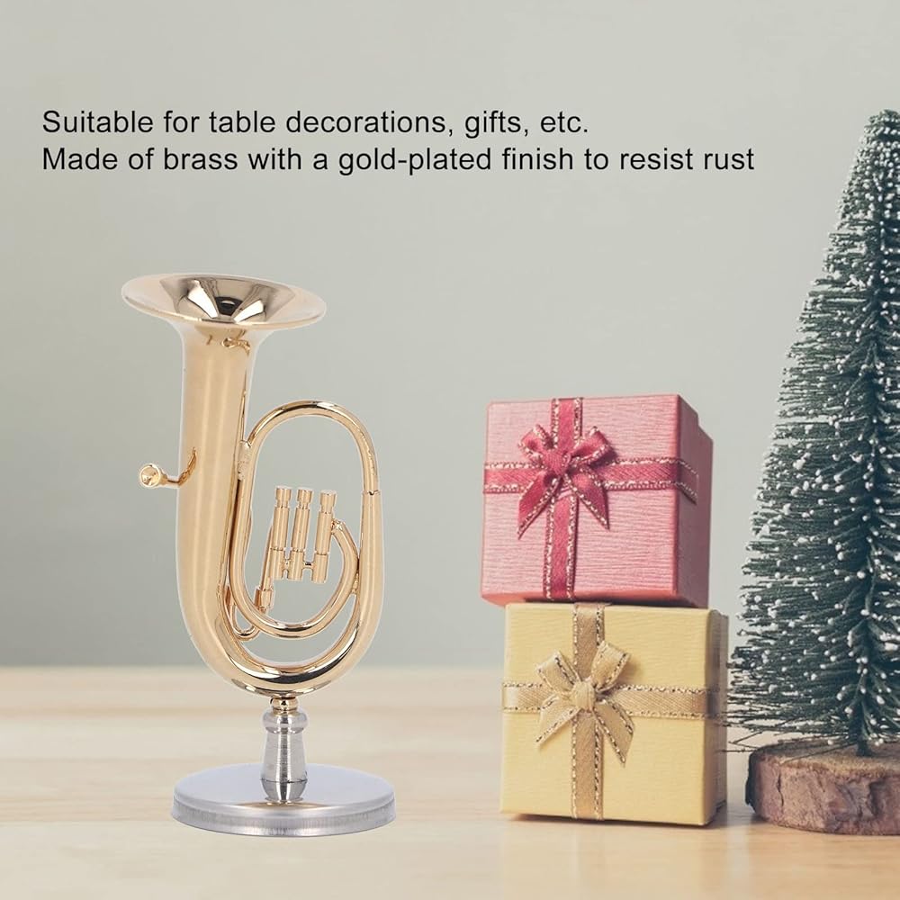 The Gold-Plated Miniature Tuba Model is a beautifully crafted brass replica designed for music lovers, collectors, and anyone looking to add a touch of elegance to their space. This exquisite model comes with a display base and features a gold-plated finish to , making it a long-lasting and stylish piece. as a gift or as a decoration for desks, bookshelves, or dollhouses, it brings a romantic and lifelike charm to any environment.