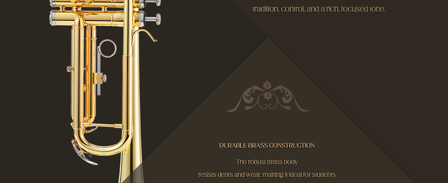 Clear Lacquer Finish for Protection and Style: Finished with a clear, high-gloss lacquer, this trumpet not only offers a professional look but also resists wear, fingerprints, and corrosion. The protective coating helps preserve the instrument's shine, even with frequent use.