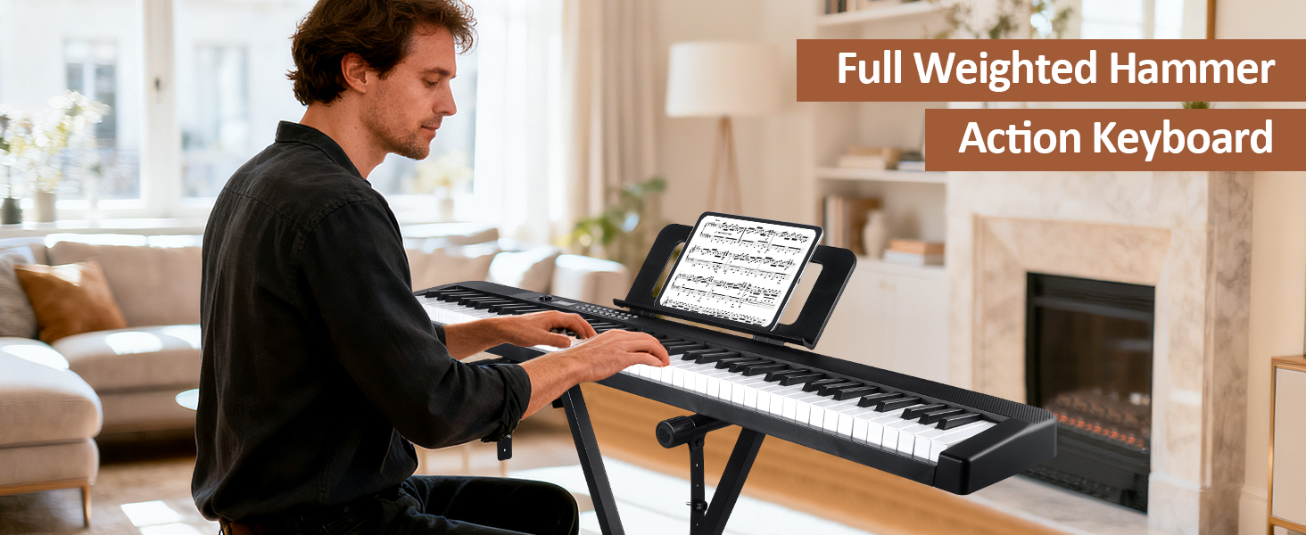 🎹【Weighted Digital Piano】- The digital piano with 88 SEMI-Weighted Keys simulates the real touch of playing the piano. Half-weighted keys reduce the sense of strength than full-weighted keys, for more sensitive touch response to suit different playing styles, suitable for beginners.