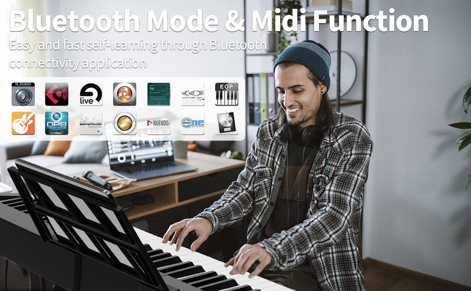 【Weighted Digital Piano】- The digital piano with 88 SEMI-Weighted Keys simulates the real touch of playing the piano. Half-weighted keys reduce the sense of strength than full-weighted keys, for more sensitive touch response to suit different playing styles, suitable for beginners.