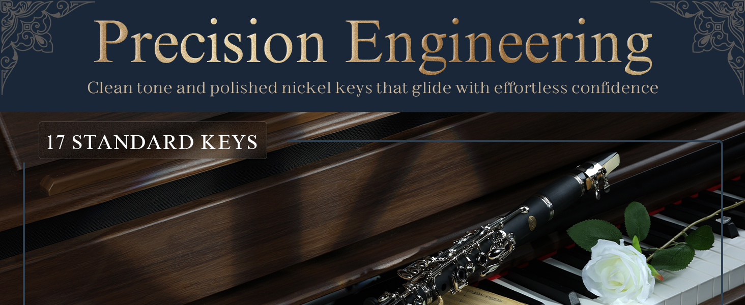 Smooth Key Response: To ensure the clarinet's keys offer smooth touch and easy movement, we use a nickel-plating process—they still remain shiny even after long-term use.