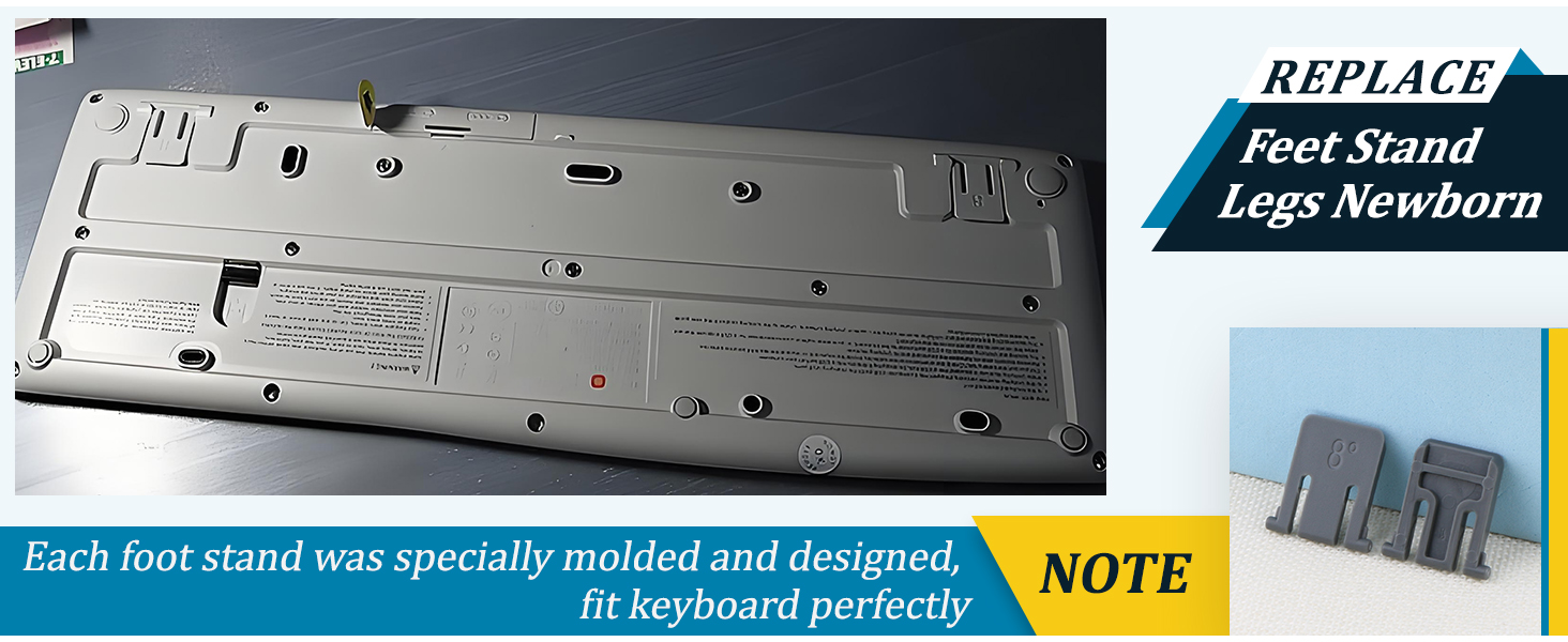 Easy Installation: Just remove the old feet leg from the keyboard, and then insert the new feet leg to keyboard off buttom.