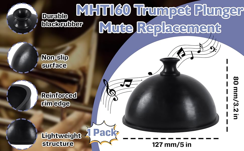 Trumpet Plunger Mute Replacement for Mutec MHT160, Rubber Wah-Wah Plunger Mute for Bb & C Trumpet and Trombone, Classic Jazz Sound, Lightweight Durable Design