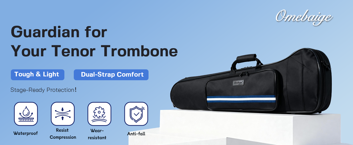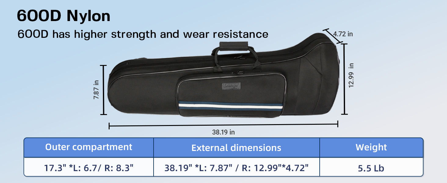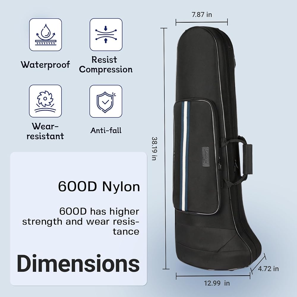 Protective Design: The trombone case features a durable a wear-resistant and water-resistant 600D Oxford cloth exterior, Lightweight & Strong – The EPS foam frame ensures your trombone is well-protected without adding extra weight. Perfect for daily practice and travel.