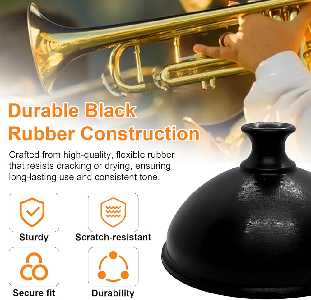 【High-Quality Durable Rubber Construction】 This trumpet plunger mute made from premium, flexible rubber that ensures warm tone, excellent responsiveness, and long-lasting durability. This rubber cup mute trumpet maintains its shape and sound even with frequent use.