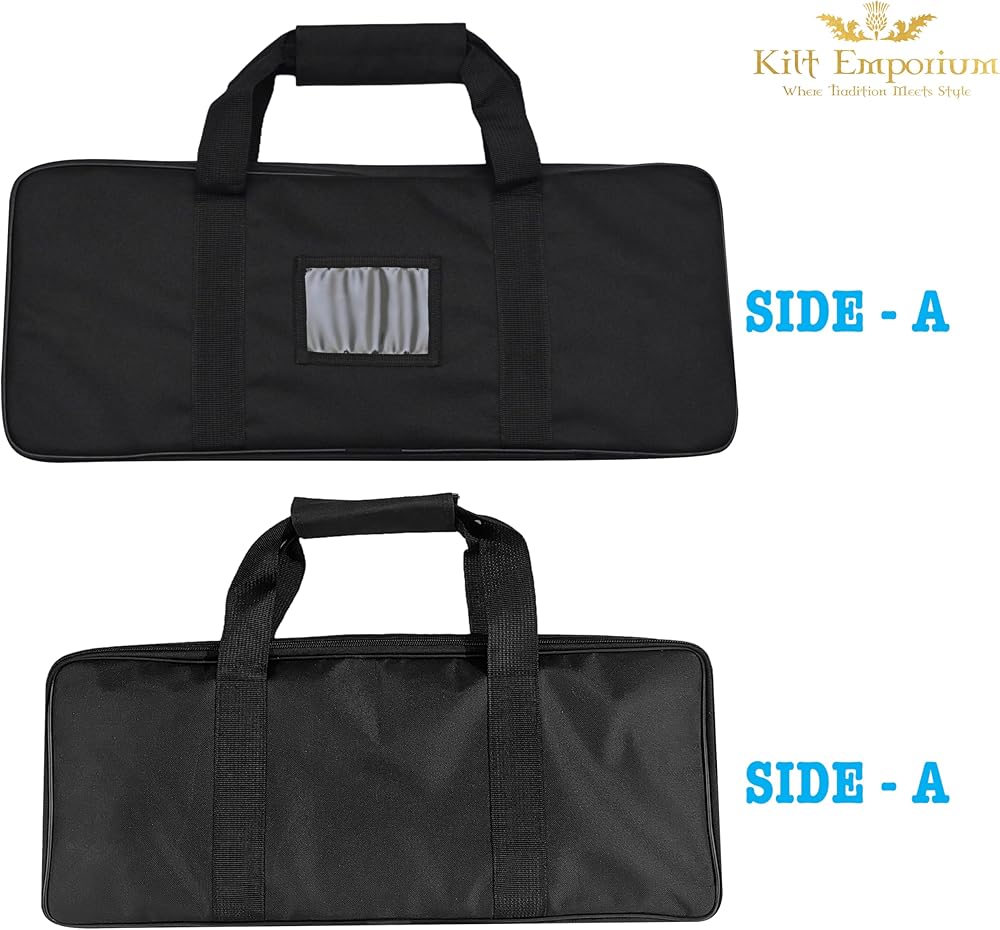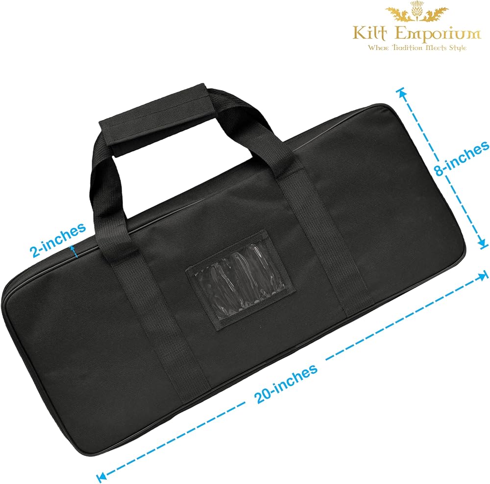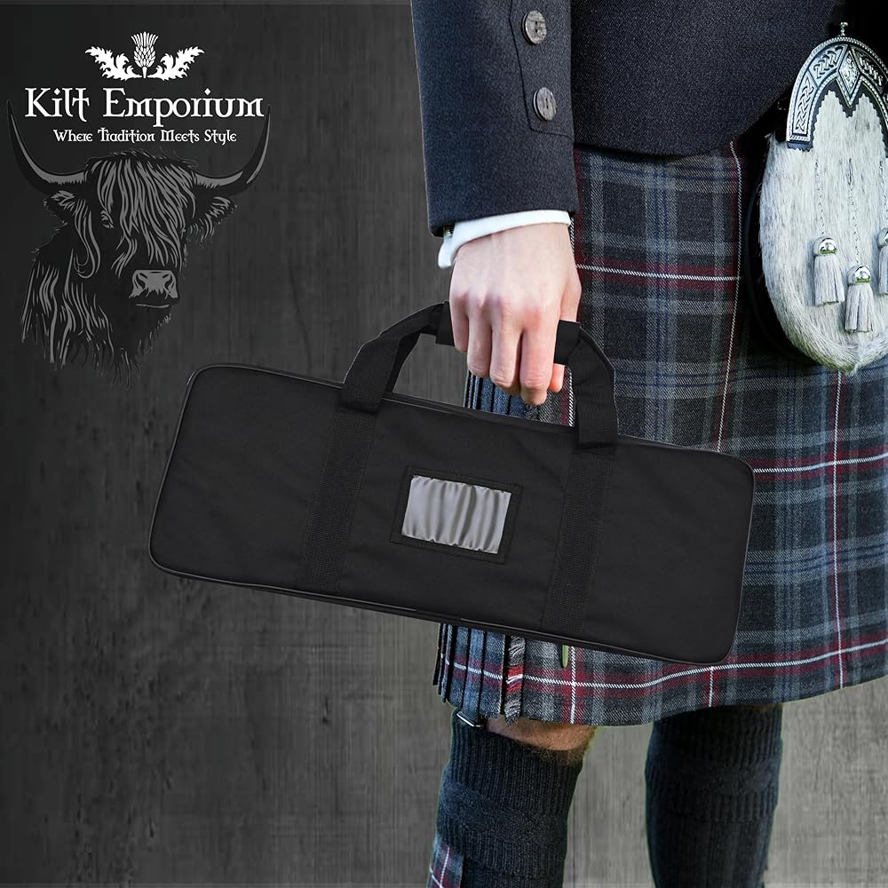 Kilt Sporran Bag: Safeguard your kilt sporran and Scottish bagpipe accessories from damage with this sturdy kilt sporran bag Piper carry case. It offers convenience and durability, ensuring your accessories remain in pristine condition wherever you go.