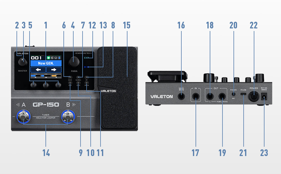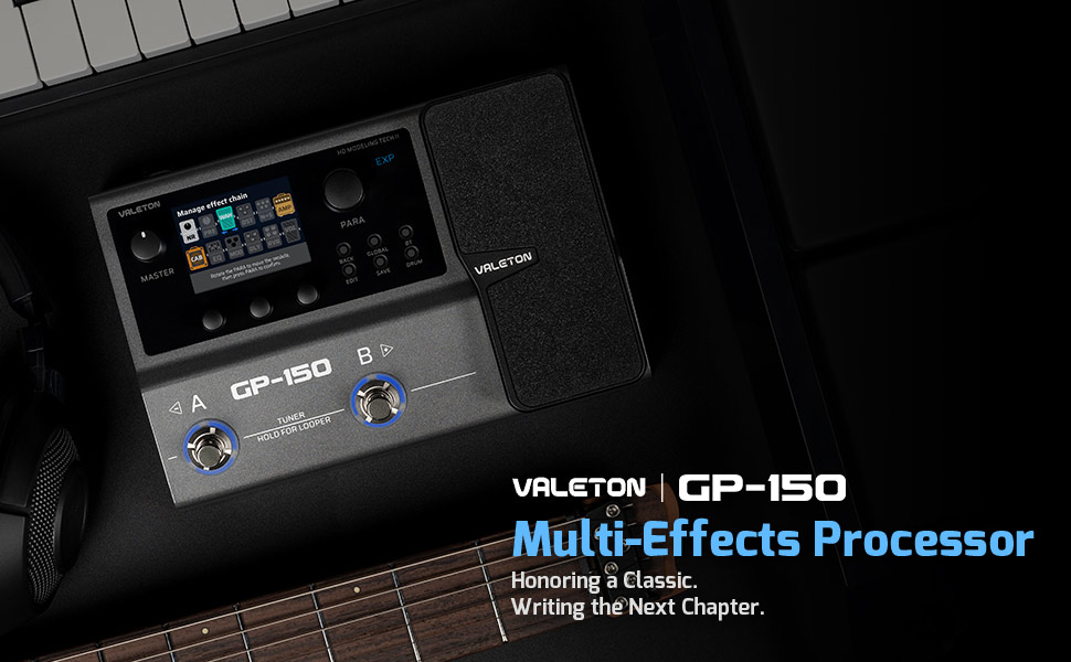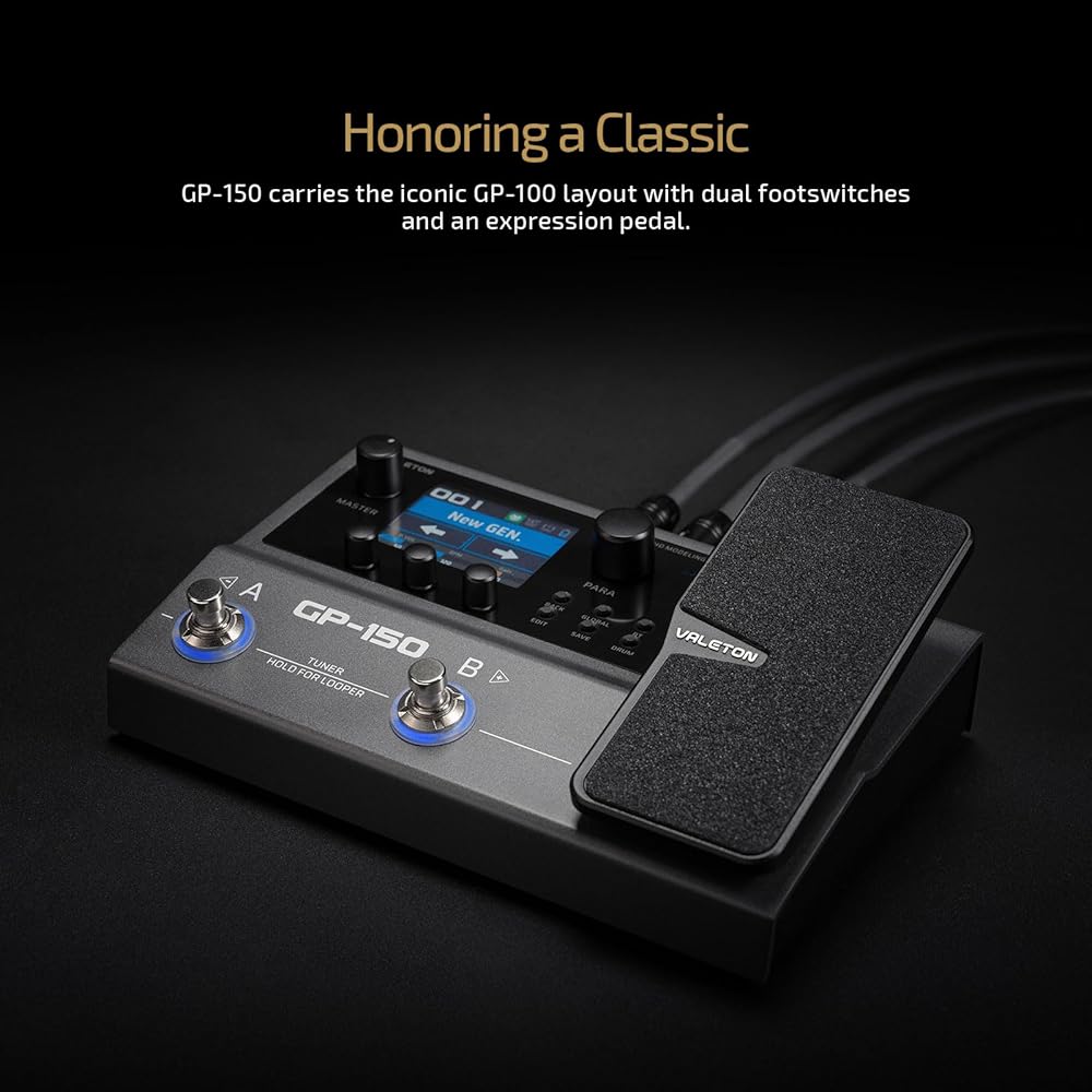 Valeton GP-150 Multi-Effects Guitar Processor with HD Modeling, 200+ Effects, Built-In Battery, IR & NAM Support, Expression Pedal, USB Audio Interface