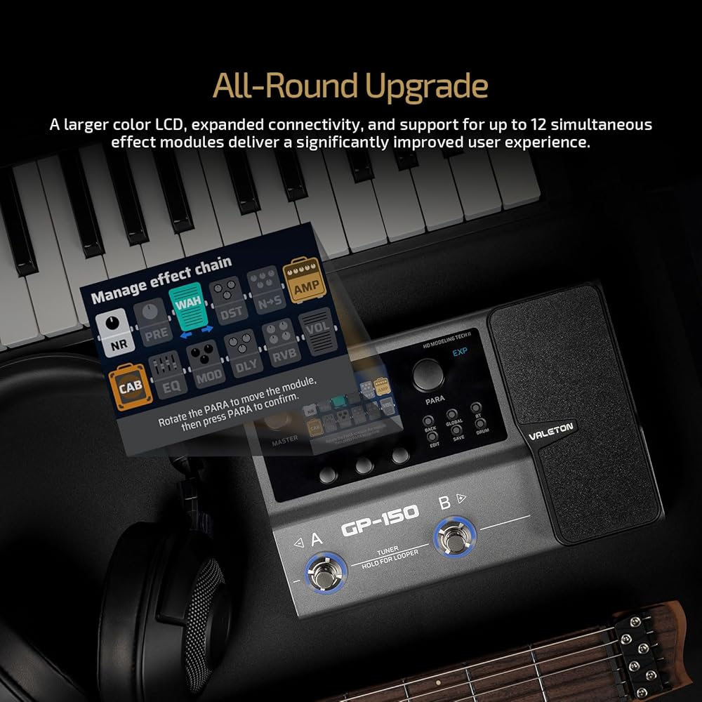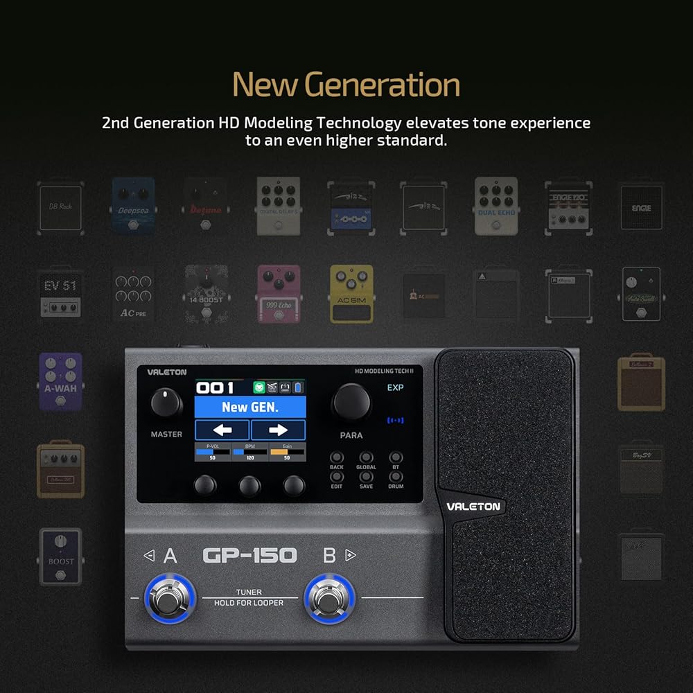 Next-Generation HD Modeling with 200+ Premium Effects: Powered by Valeton's second-generation HD digital modeling technology, the GP-150 delivers over 200 high-quality effects with a 48kHz sample rate, providing improved clarity, realism, and dynamic response for guitarists of all styles.