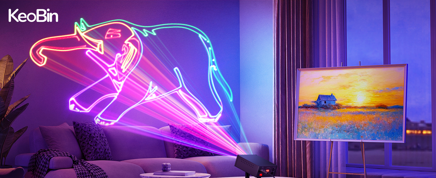 【Bright Patterns with Adjustable Coverage】KeoBin dj lazer light features a high-brightness RGB laser show projector that delivers vibrant, uniform lighting across 400+ sq.ft. Easily adjust pattern sizes to perfectly fit any space - from cozy corners to expansive living areas. Built-in cooling fan and safety protection, it supports 8+ hours of continuous operation, bringing club-quality lighting effects to your home entertainment