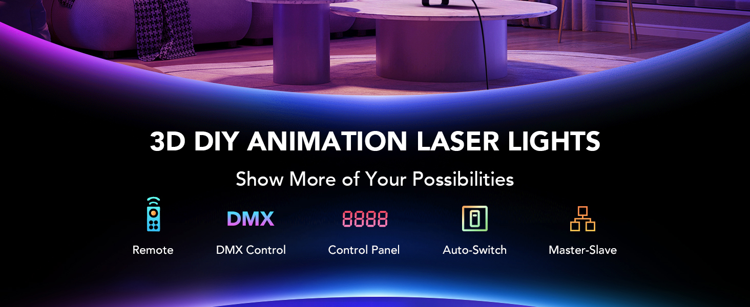 【6 Modes Adapt to Any Scenario】Enjoy seamless party laser lights synchronization through Sound-Activated Mode, where lasers pulse to your music's rhythm, or control via APP/Remote Control for wireless flexibility. For professional laser DJ, DMX512 enables multi-device synchronization for precision control, while Master-Slave and Auto Mode deliver plug-and-play simplicity—perfect for instant, hassle-free operation