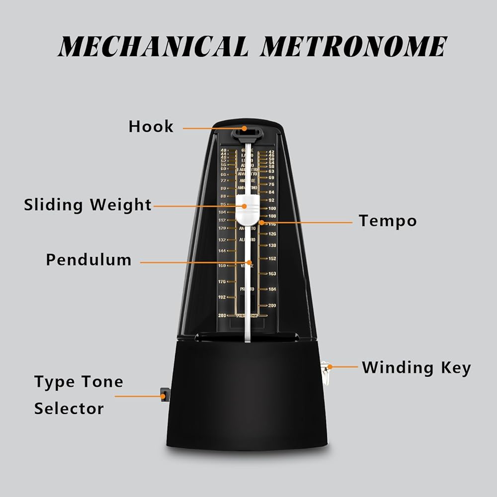 HIGH-EFFICIENCY TOOL: The metronome delivers precise beats with a loud, clear sound to help you efficiently master rhythm. Crafted from premium materials with engraved markings, it ensures long-lasting durability for years of reliable use. Whether you opt for this device or other mechanical metronomes, a quality metronome is key to musical progress