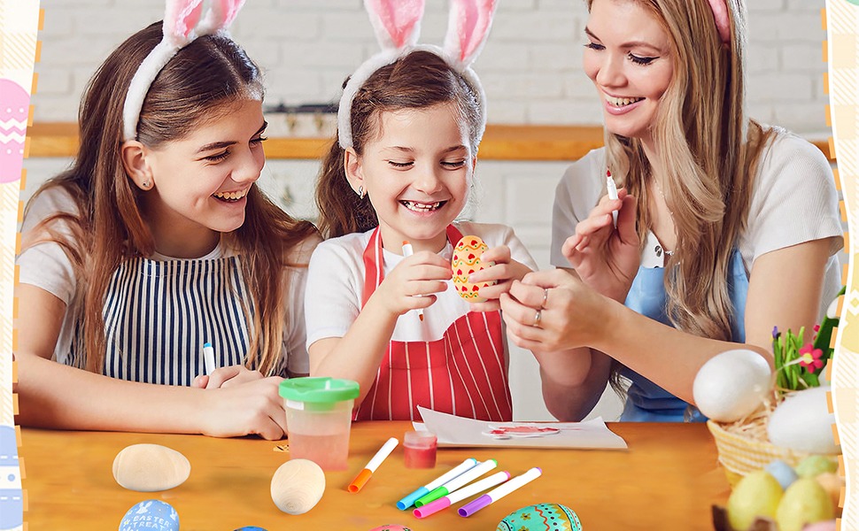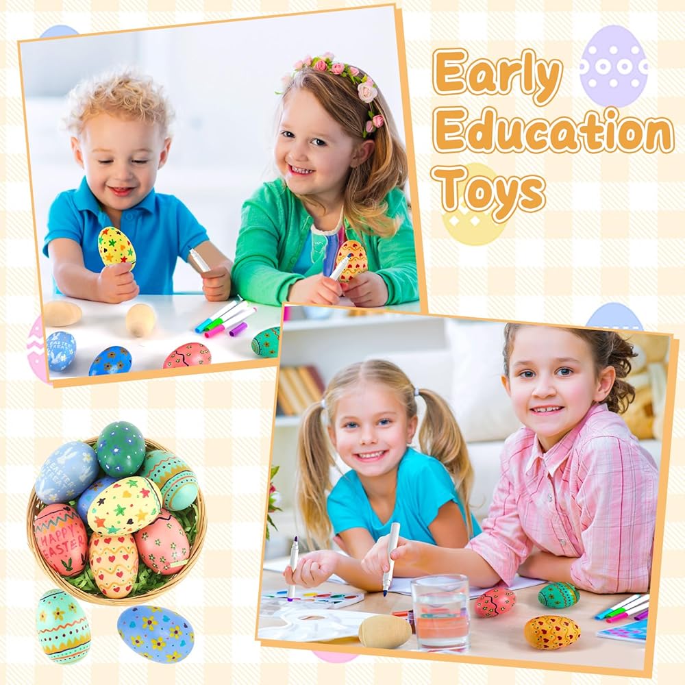Creative Easter Crafts DIY: Egg shakers musical instruments set includes 6 pieces wooden egg shakers and 6 pieces vibrant coloring pens, egg shakers allow users to design and personalize their own musical instruments for a unique creative experience