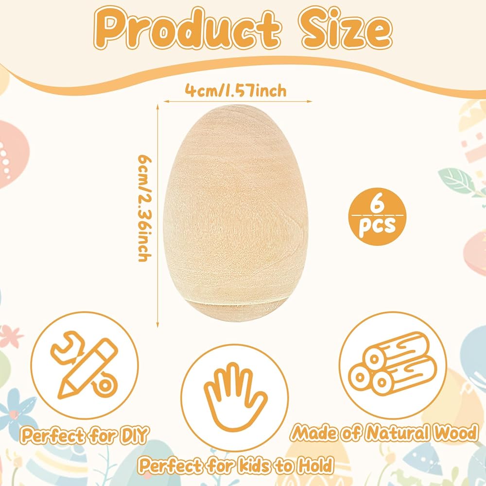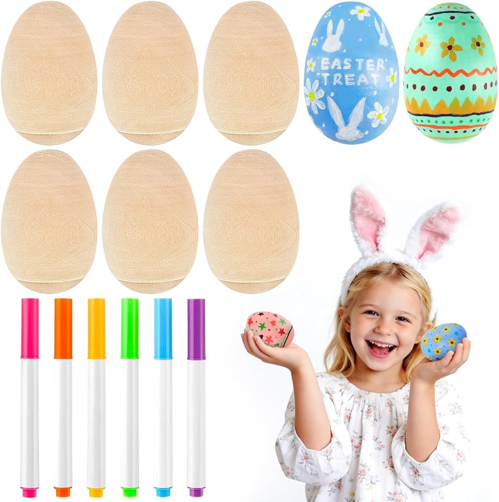 AUGSHY 6 Piece Easter Crafts for Kids,DIY Wooden Egg Shakers Set with Pens, Unfinished Musical Instruments for Classroom Home Party Decorations Easter Gifts