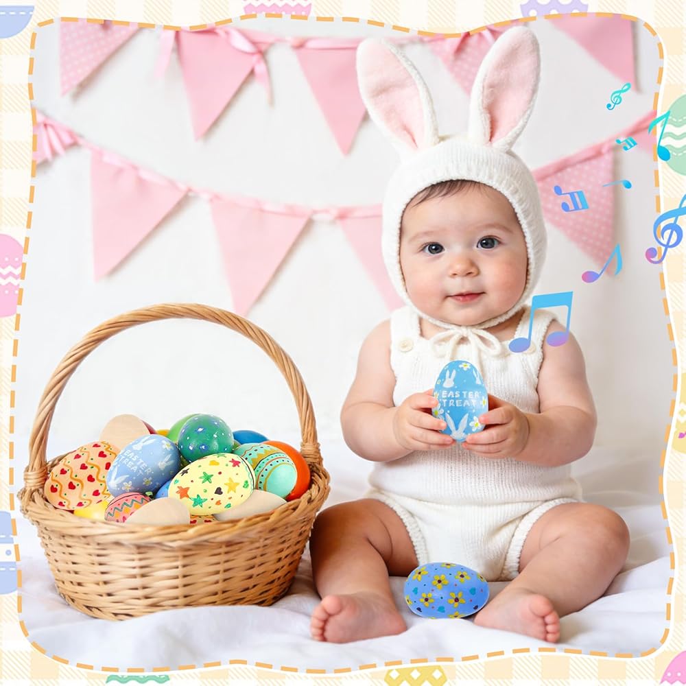 Smooth and Secure Materials: Crafted from good-quality wood and sand, each wooden egg shakers features a smooth, polished surface with rounded edges for comfortable and secure handling. Egg shakers are ideal as easter basket stuffers, eatser party favors, spring classroom rewards, christmas stocking fillers, or birthday gifts for various celebrations