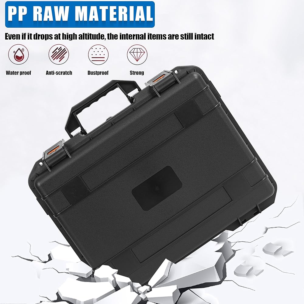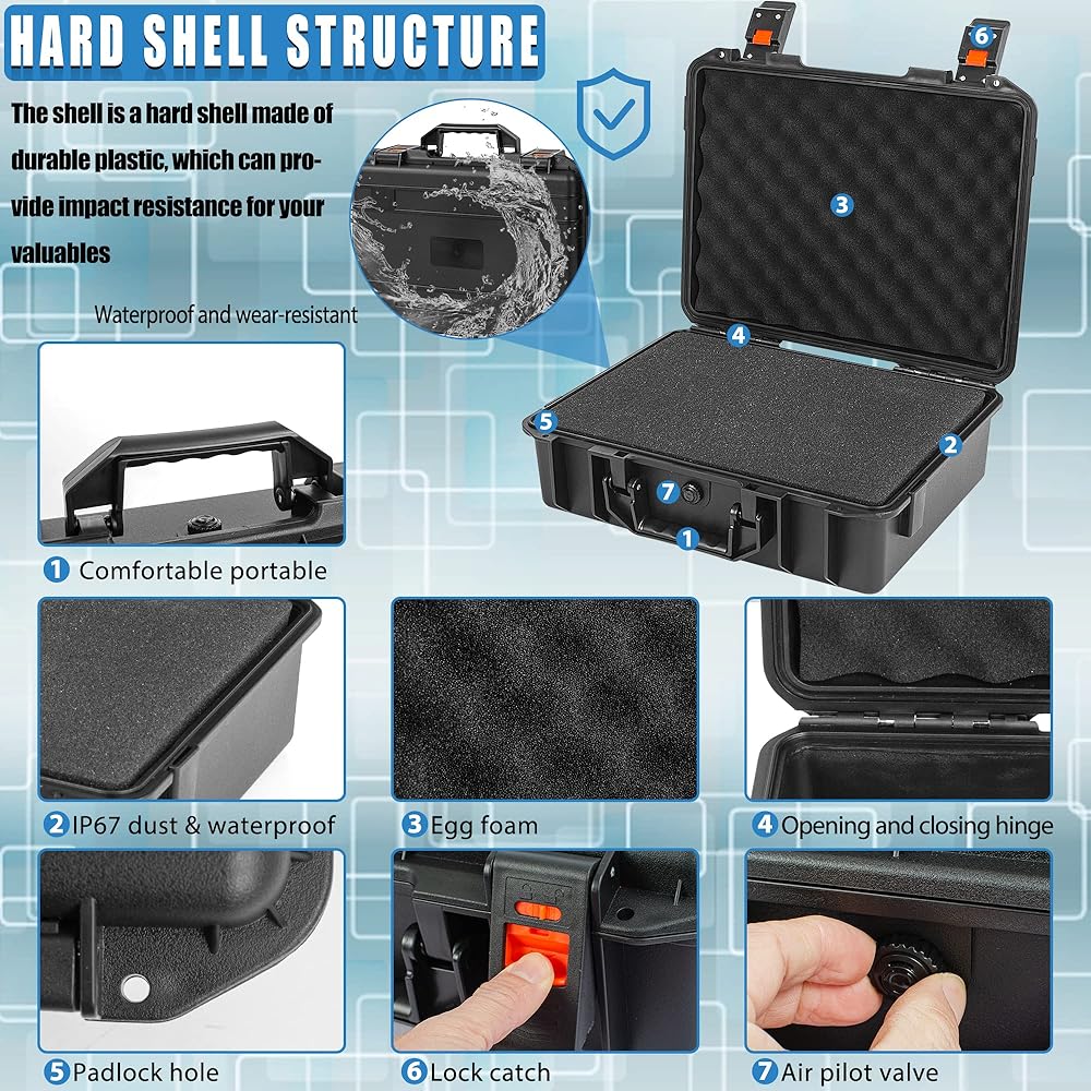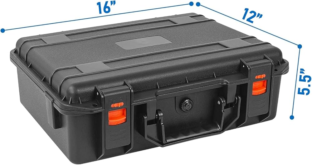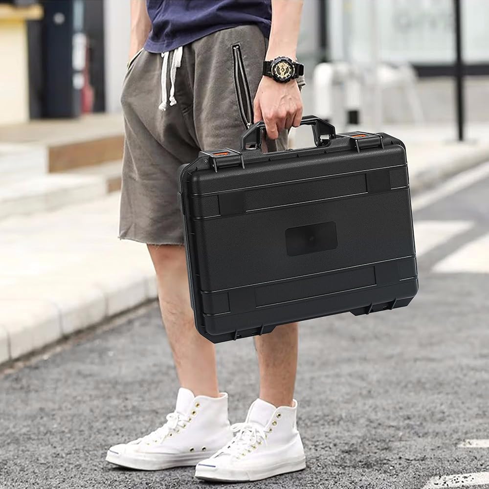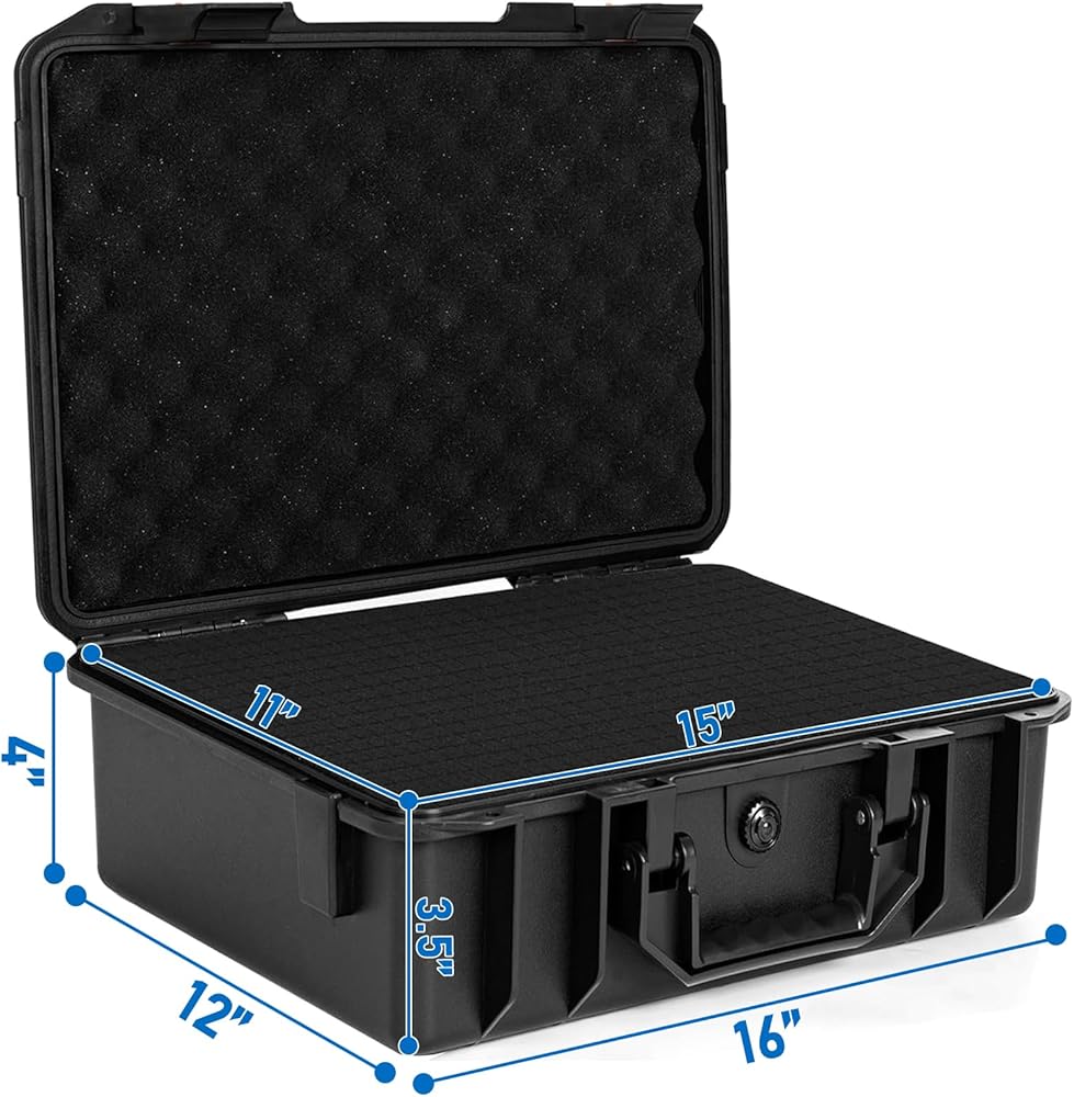 【Product Dimiensions】:Hard case with foam internal dimensions: 15 x 11 x 3.5inch; External dimensions: 16" x 12" x 5.5".This Protective case also comes with a sliding-lock latch system that has holes for padlocks, adding an extra layer of securit