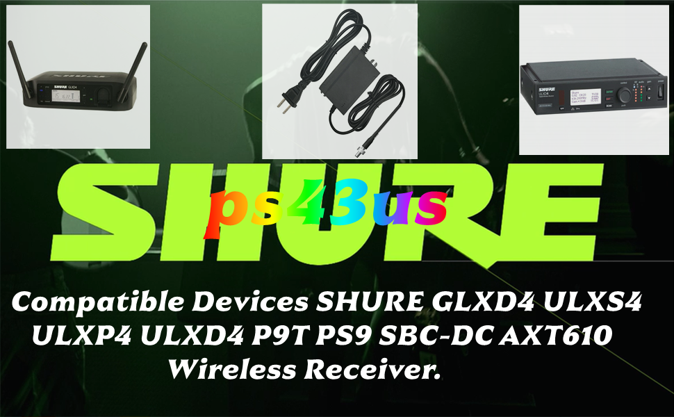 IRELESS SYSTEM: Compatible power supply for professional wireless microphone system receivers.for shure glx power supply. for shure microphone charger .ps43us for shure wireless microphone ac adapter.for shure glxd4 for shure ulxd4 wireless receivers