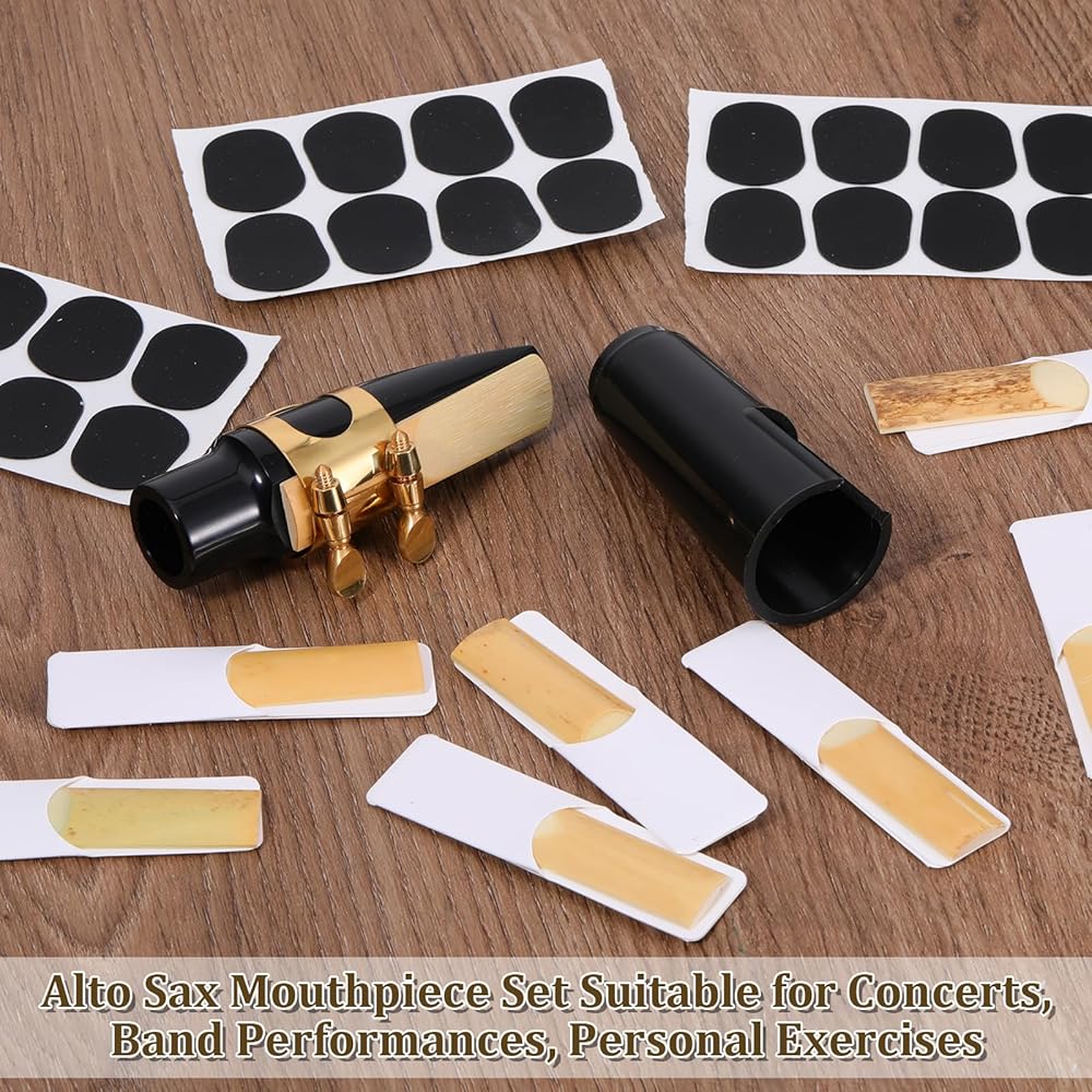 Complete 49-Piece Reed & Accessory Set: This comprehensive kit includes 21 alto saxophone reeds (strength 2.5), 24 mouthpiece pads, 1 gold sax ligature, 1 mouthpiece with ligature, 1 protective cap, and 1 durable EVA storage case. The generous quantity ensures consistent performance with ample spares for regular replacement, making it ideal for both practice and performances.