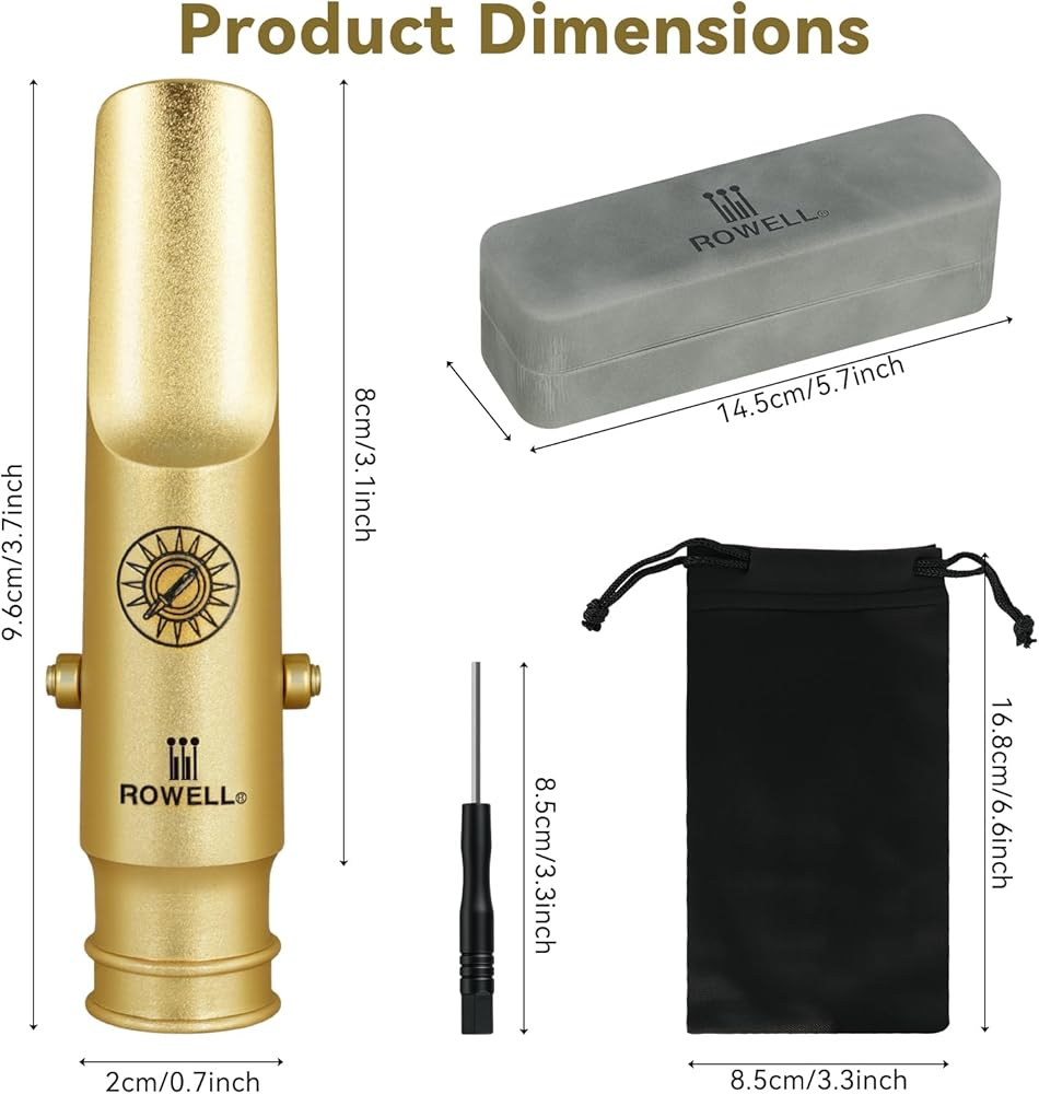 Package Includes: 1 metal mouthpiece, 1 dedicated mouthpiece cap, 1 high-quality double-screw mouthpiece holder ,1 protective box. It is the perfect gift for music lovers and professional saxophonists