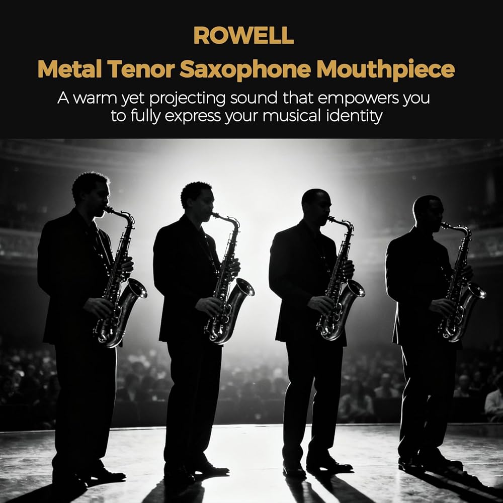 ROWELL Tenor Saxophone Metal Mouthpiece Jazz Sax Mouthpiece- 5-Level Adjustable Ligature & Protective Cap Full Tone for Jazz & Concert Band