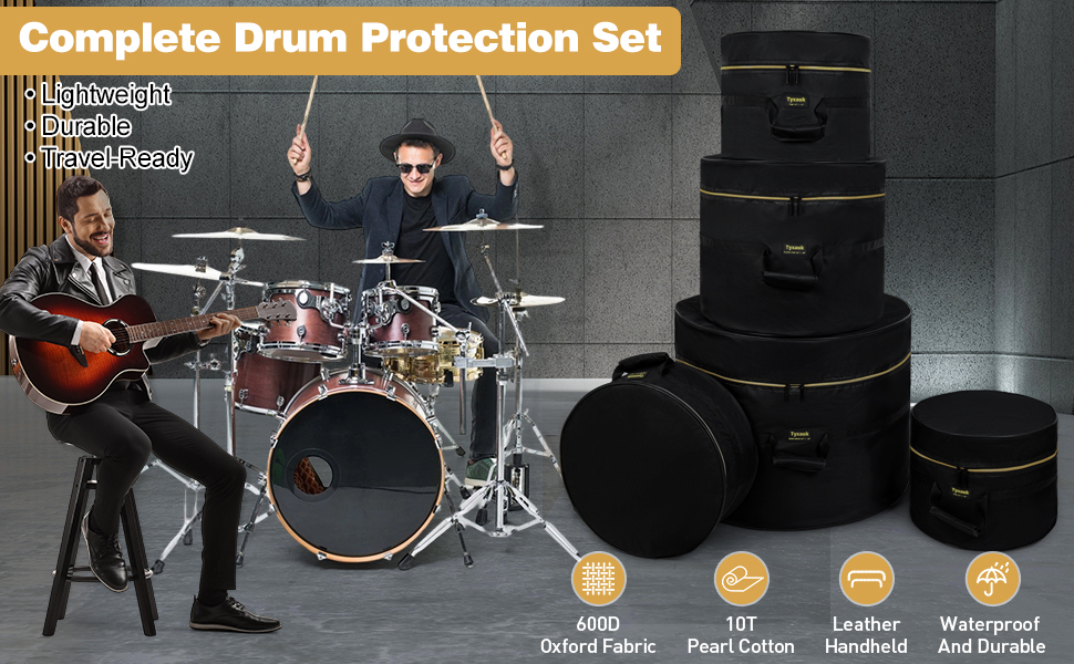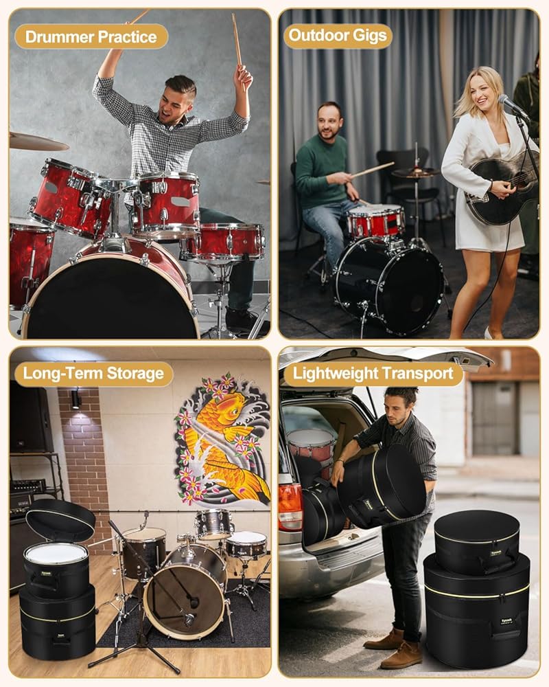 🎵[ Durable Water-Resistant Fabric] - Crafted from 600D water-resistant, eco-friendly nylon, these drum carrying cases resist moisture, dust, and wear, ideal for outdoor gigs or garage storage.