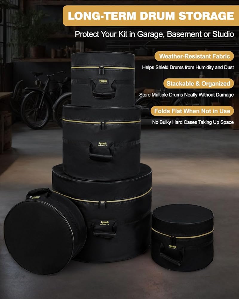 🎵 [ Foldable Compact Storage] - These collapsible drum bags fold flat to just 2" thick when not in use, saving space and providing the ultimate drum storage solution for small studios.