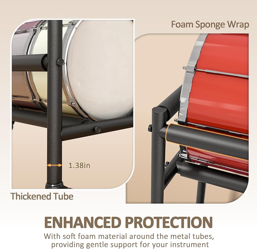 FOAM PROTECTION: The snare drum rack stand's support tubes are fully wrapped in soft cushioning foam, gently cradling the instrument without leaving marks. This provides all-around protection against bumps and scratches