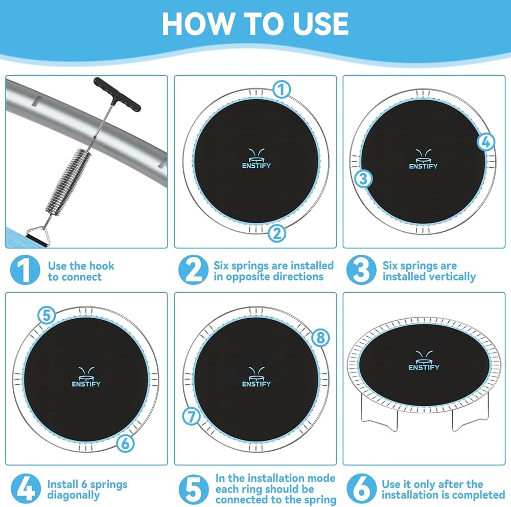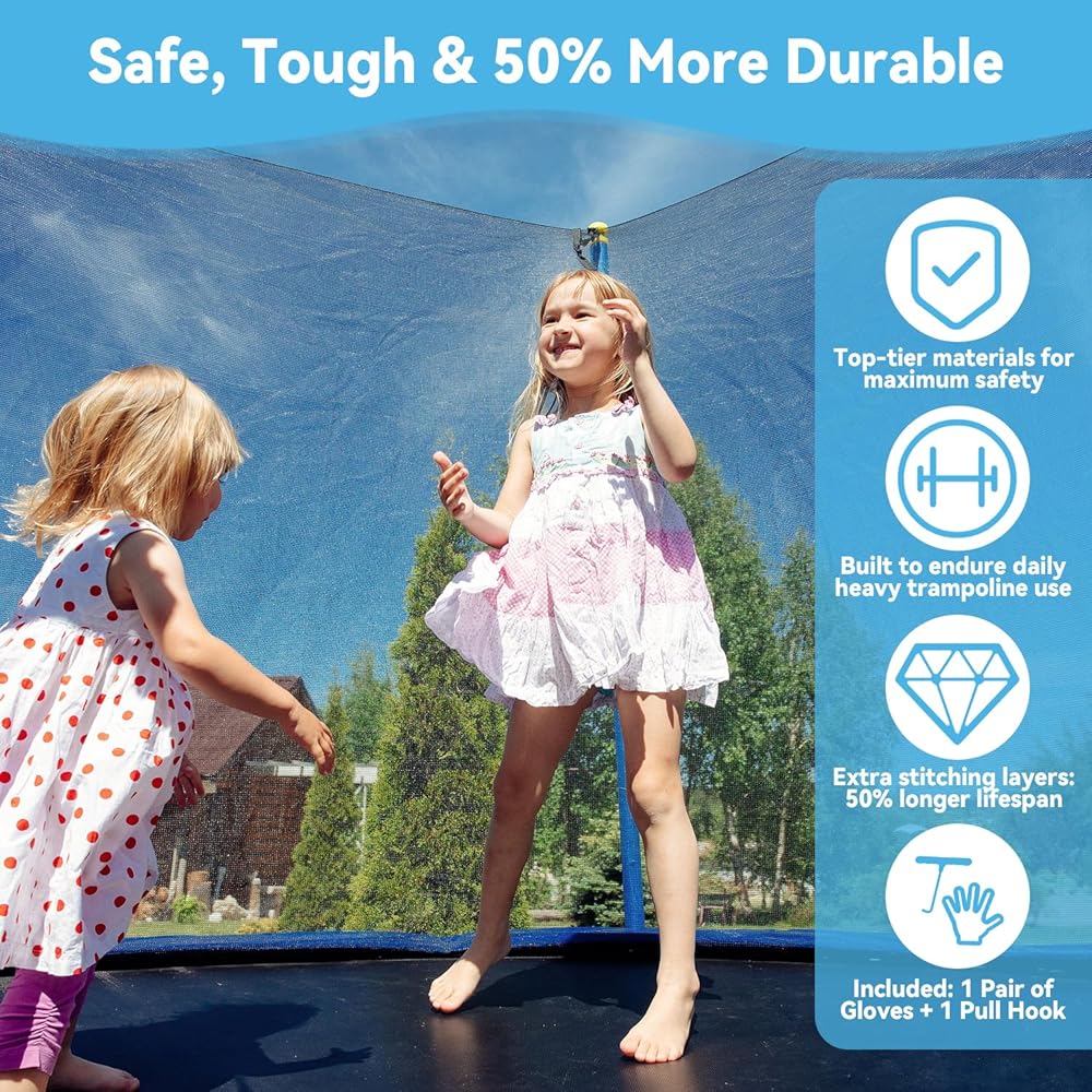⚡ 【EASY DIY INSTALLATION IN 10 MIN】Includes spring puller & puncture-proof gloves. Pro tip: Anchor diagonally for even tension! Perfect for busy parents maintaining home trampoline parks