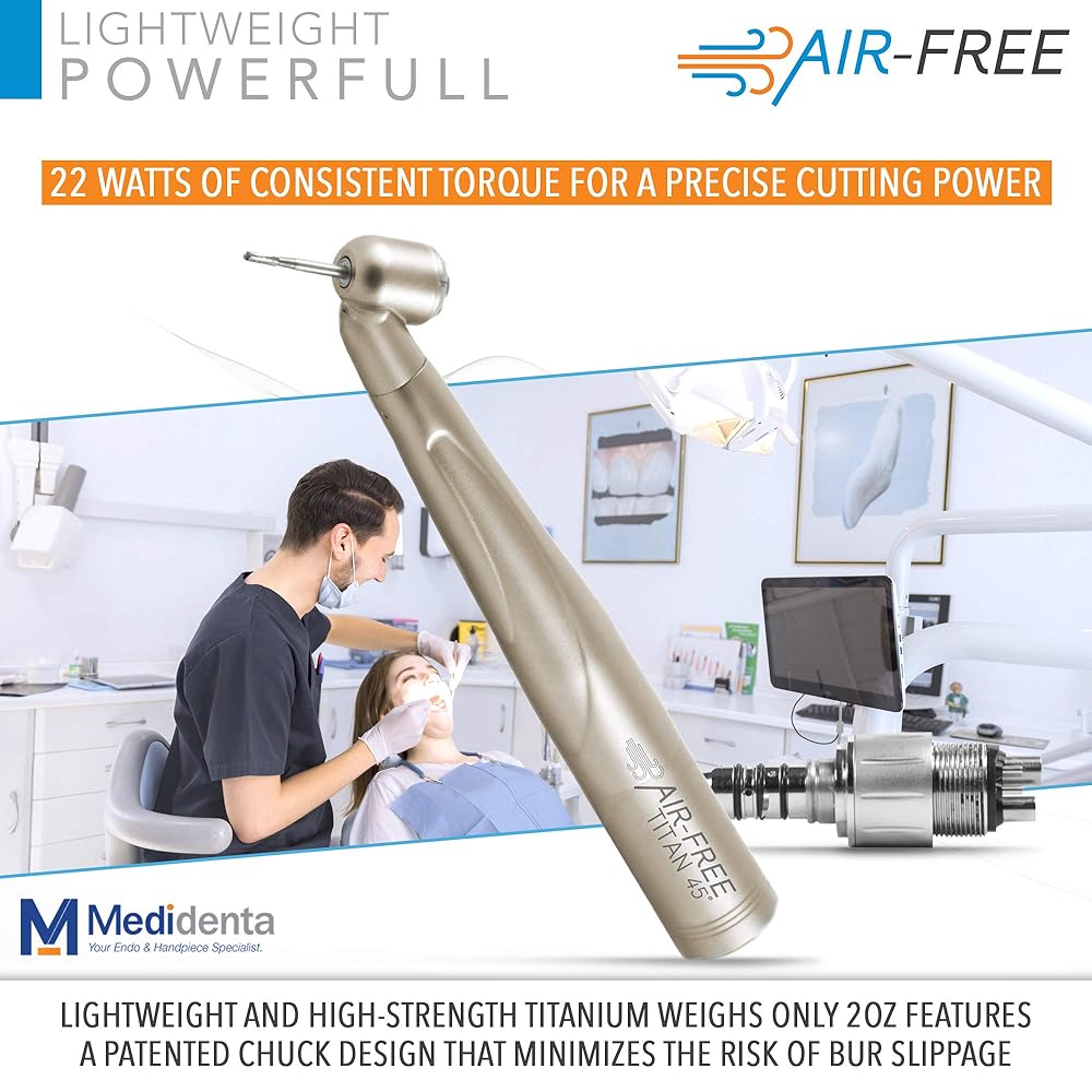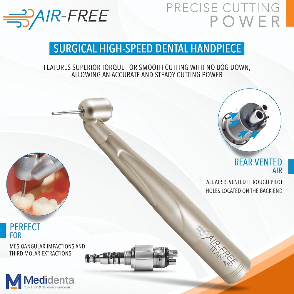 MEDIDENTA Air Free 45 Titan Surgical – High-Speed Dental Handpiece For Air-Free Debonding to Reduce Cold Sensitivity and Discomfort, 22Watts of Consistent Cutting Power