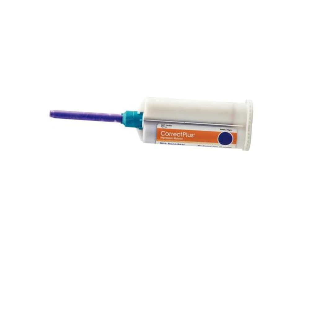Correct Plus BITE Superfast Material, Hydrophilic Vinyl Polysiloxane, 32 pack refill: 32 - 50 ml cartridges and 100 mixing tips. Cartridge refill for Correct Plus Impression Material. Shape remains intact after removal. Creates impressions in 3-1/2 minutes. Great variety of viscosities. Correct Plus Impression Material is an impression material formulated for great versatility, enabling use in all types of impression methods. After only 3 minutes and 30 seconds, the material is ready for removal.Correct Plus features a remarkable level of consistency that keeps the shape intact at this crucial stage of the process. This product is available in a wide variety of viscosities to suit each practitioner's work style.Each pack contains 32 (50 ml) cartridges.