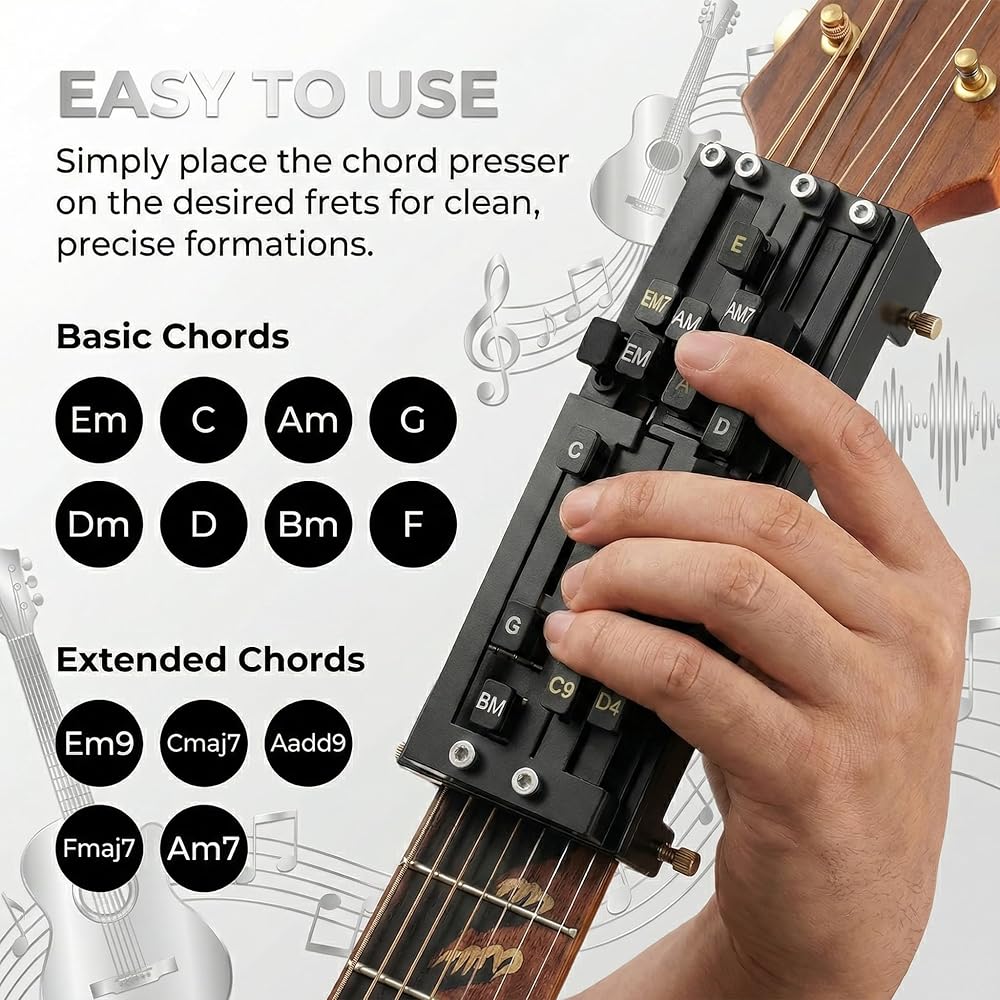 【Professional Chord Tool & Accessory】 From folk to live performance, unlock advanced chords and elevate your playing. This chord-assisted learning tool is also an ideal gift for someone learning guitar, offering a frustration-free path to musical confidence.