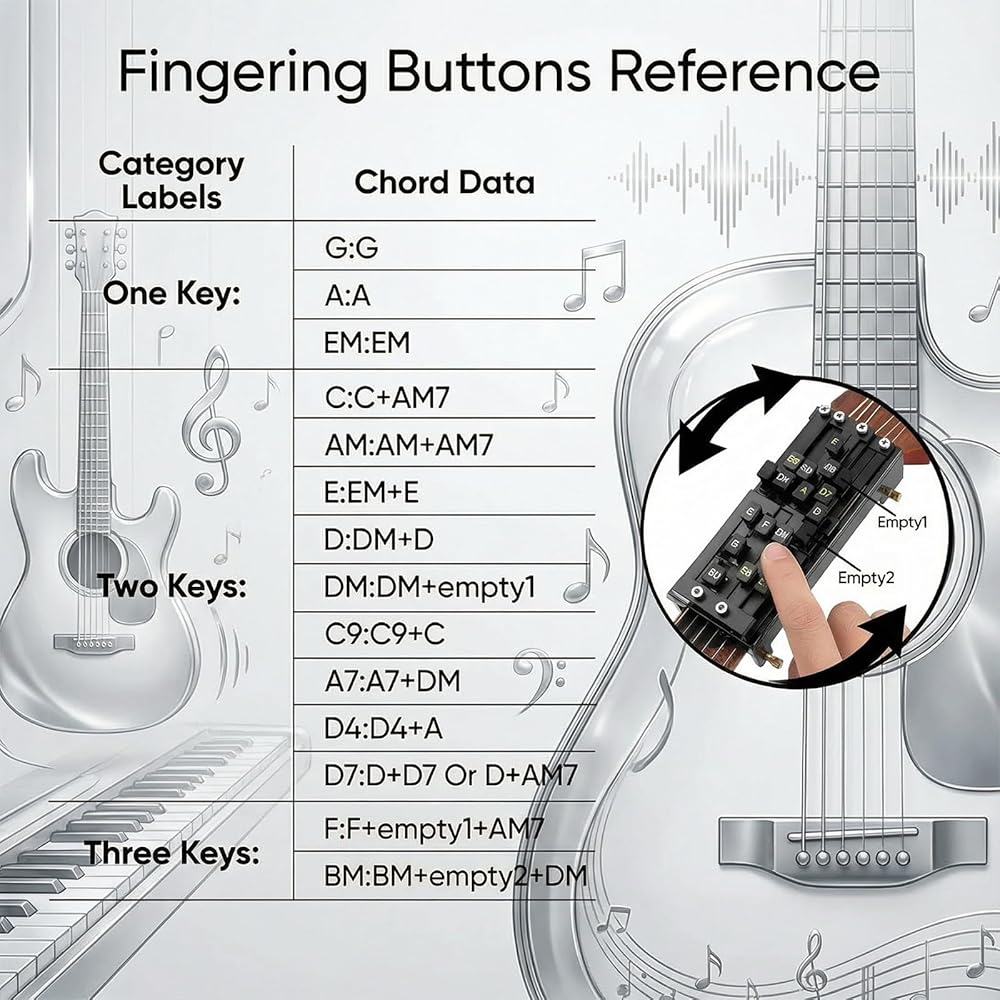 【Smart Practice & Learning System】 Features 15+ preset chord configurations (C, G, D, Em, etc.) and a built-in chord library including Cmaj7 and Em9. Switch between chords instantly to play blues, pop, and jazz styles—no music theory required.