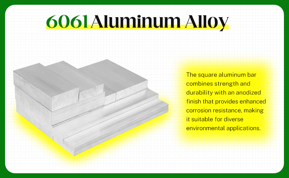 【High Quality Material】The aluminum Bar are made of 6061 aluminum alloy, which is wear-resistant, corrosion-resistant and oxidation-resistant, and can be used directly or processed twice.