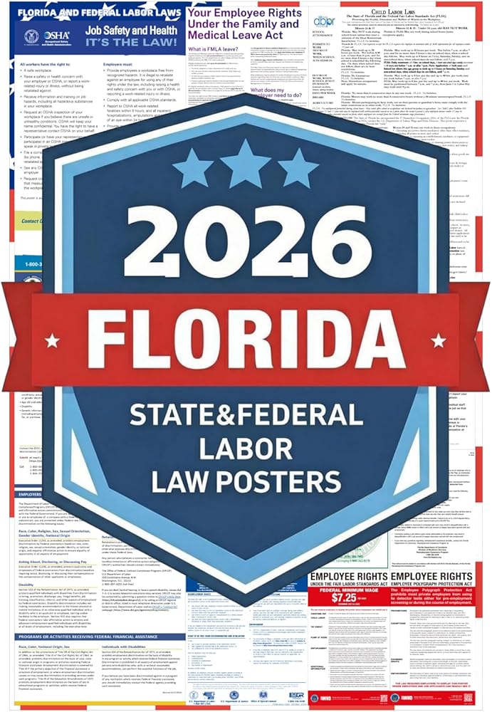 Don't leave compliance to chance—order your 2026 Florida State and Federal Labor Law Posters today and ensure a safe, informed, and legally compliant workplace!