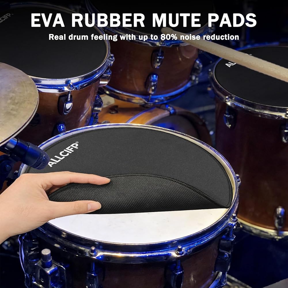 [Quiet Practice Ready]: Drum kit mute pads reduce volume by about 80% while keeping a natural stick feel. Another 20% is the natural thud of hitting the pads. Ideal for quiet drum practice that will not disturb family or neighbors.