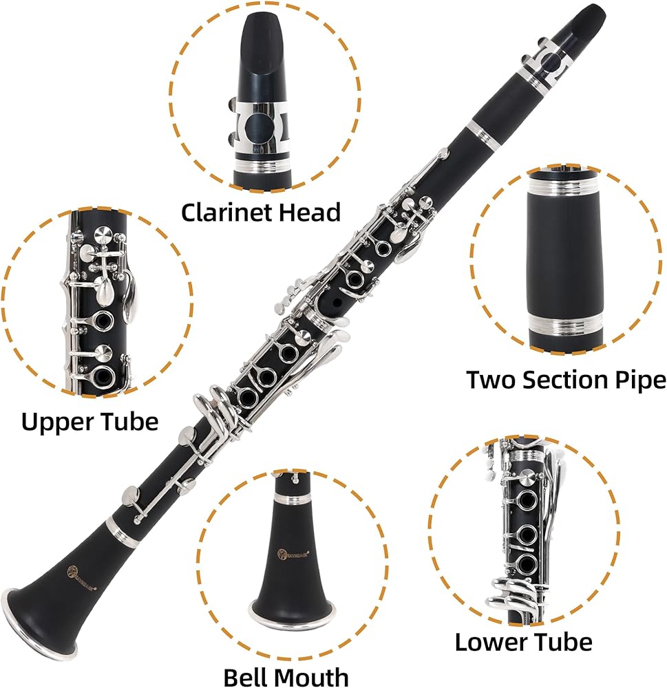 ❤️【High-quality Materials】Made of durable synthetic ABS material, the student clarinet is lightweight and has a rich, warm tone. The keys are nickel-plated to the highest level for a smooth and textured surface; the body is ergonomically designed for a great feel and ease of use.