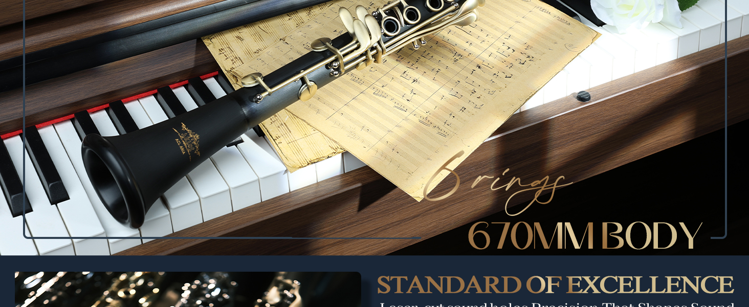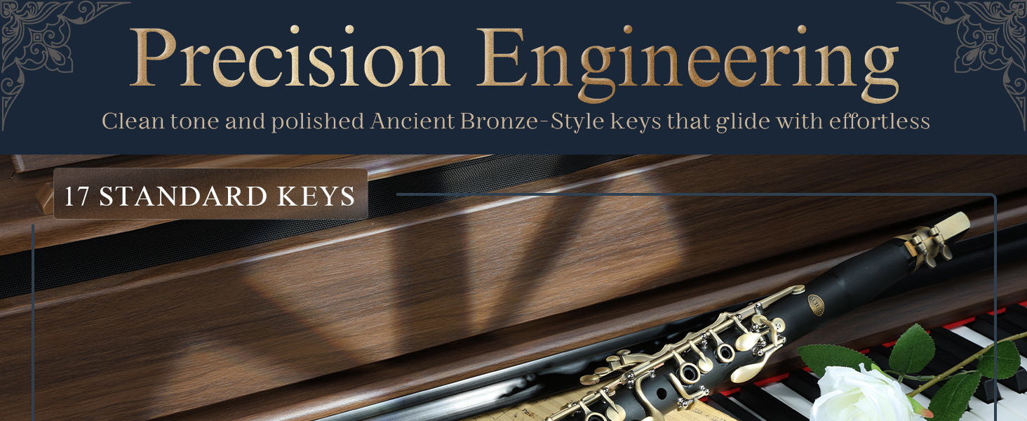 Retro Charm: The bronze-finished keys of this clarinet not only lend a vintage charm to the instrument, but also ensure a comfortable touch and easy movement for the keys—they still maintain their shine even after long-term use.