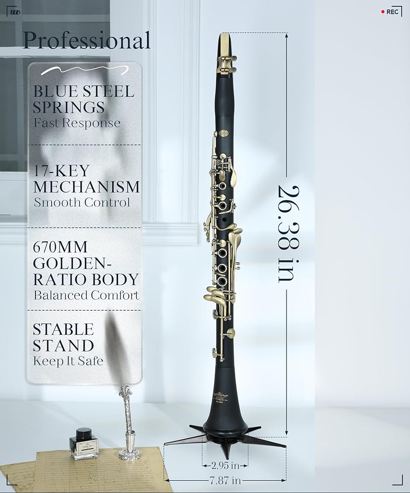 Balanced Design: This clarinet features a 670mm body with a golden ratio design and a 17-key, 6-ring fingering system. Ergonomically crafted, it is ideal for players—while providing room for growth as they refine their fingering technique.
