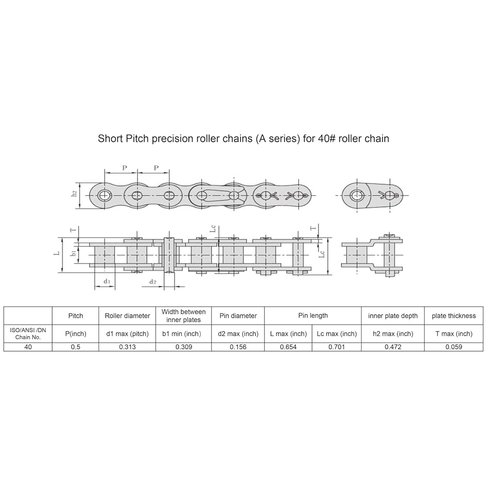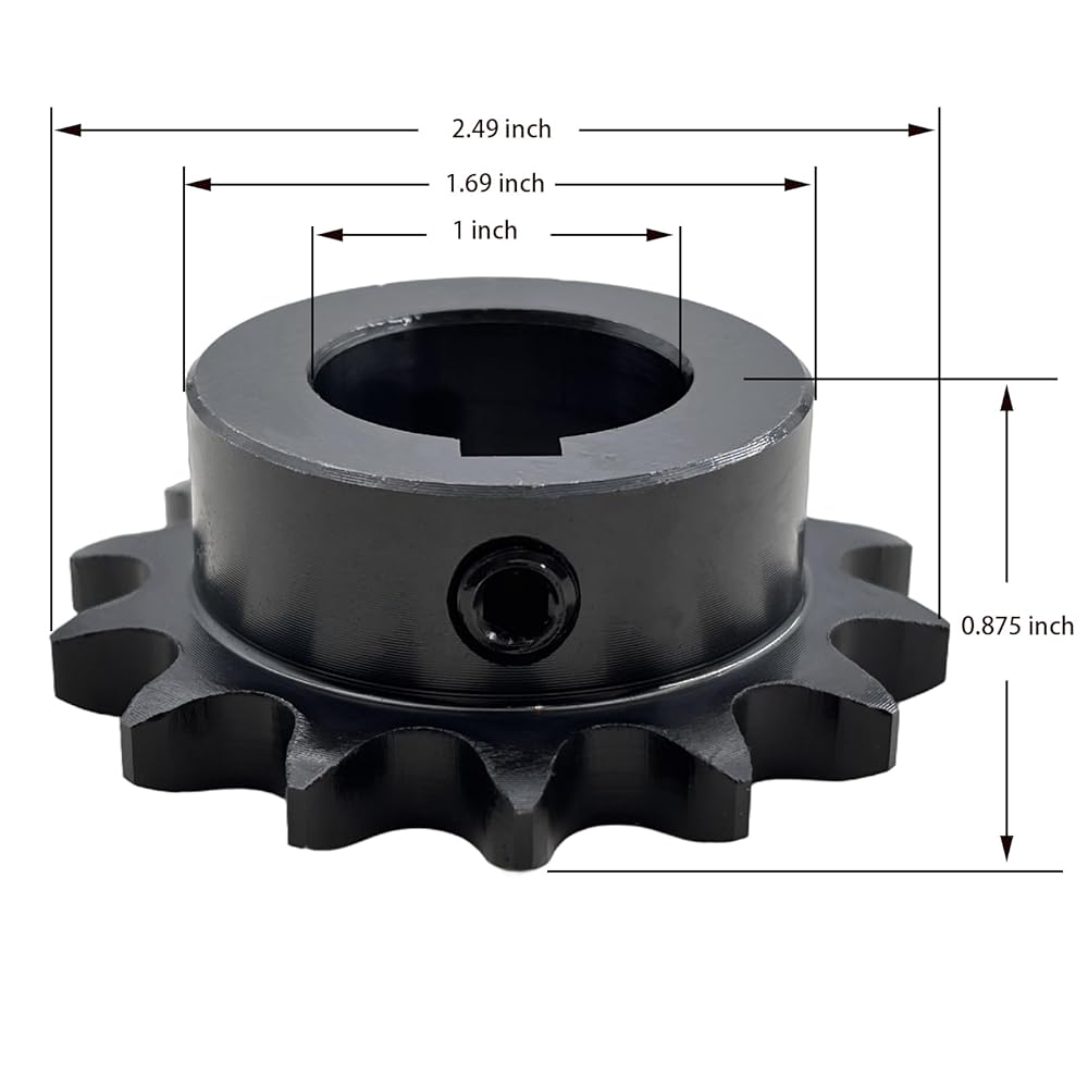 Size information:American Standard ANSI #40,1/2 inch Pitch,1 inch Bore,14 Teeth,1/4X1/8 Keyway,2 Setscrews at 90 degrees,B Type,Suitable for #40 chain