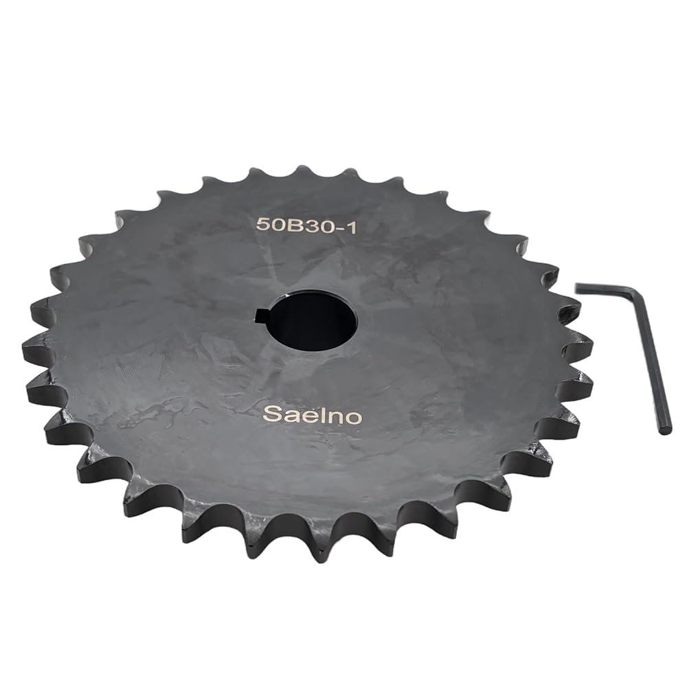 Size information:American Standard ANSI #50,5/8 inch Pitch,1 inch Bore,30 Teeth,1/4X1/8 Keyway,2 Setscrews at 90 degrees,B Type,Suitable for #50 chain