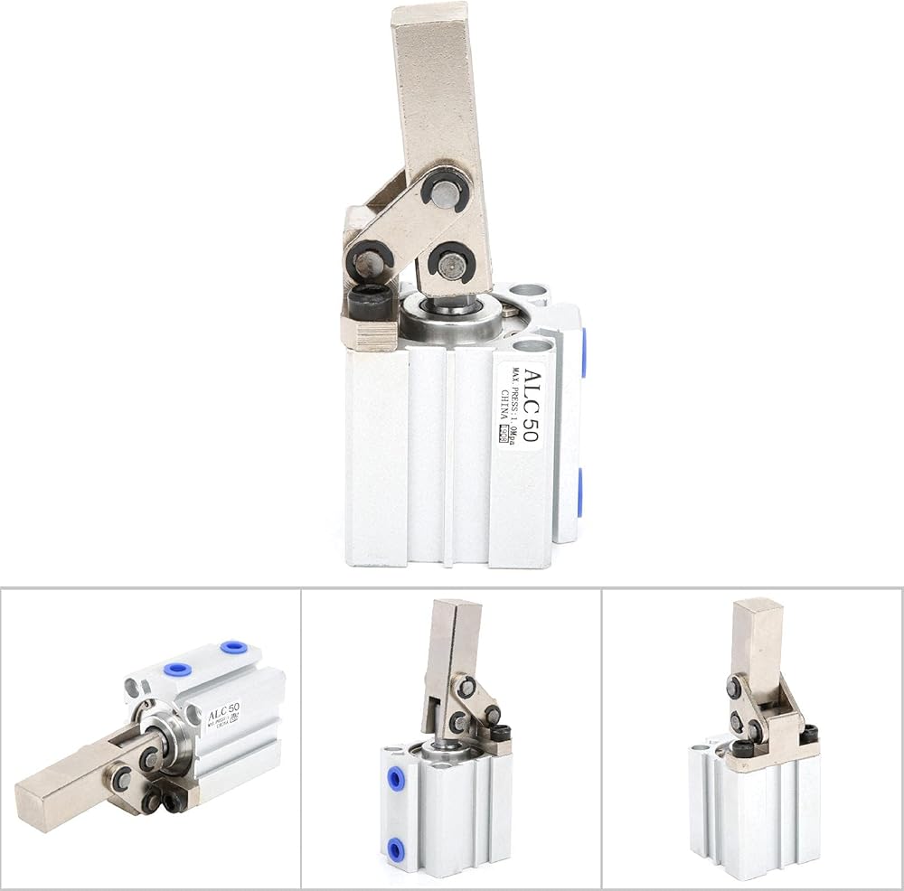 Optional model: ALC25, ALC32, ALC40, ALC50: Bore diameter x Inlet hole thread x Stroke(mm) x Holding force(Kgf) x Clamp arm opening angle: 25 x M5×0.8 x 20 x 15 x 15 x 82° / 32 x 1/8 x 20 x 25 x 73° / 40 x 1/8 x 25 x 45 x 62° / 50 x 1/4 x 30 x 70 x 80°.