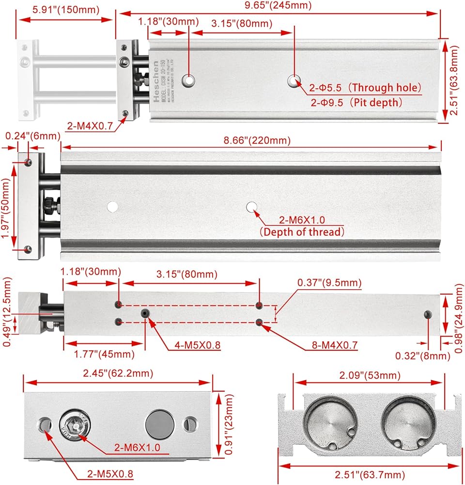 The Air cylinder is a mechanical devices which utilize the power of compressed gas to produce a force in a reciprocating linear motion. Compact Aluminum Air Cylinder CXSM 20-150 the Max.theoretical force is 14Kgf.