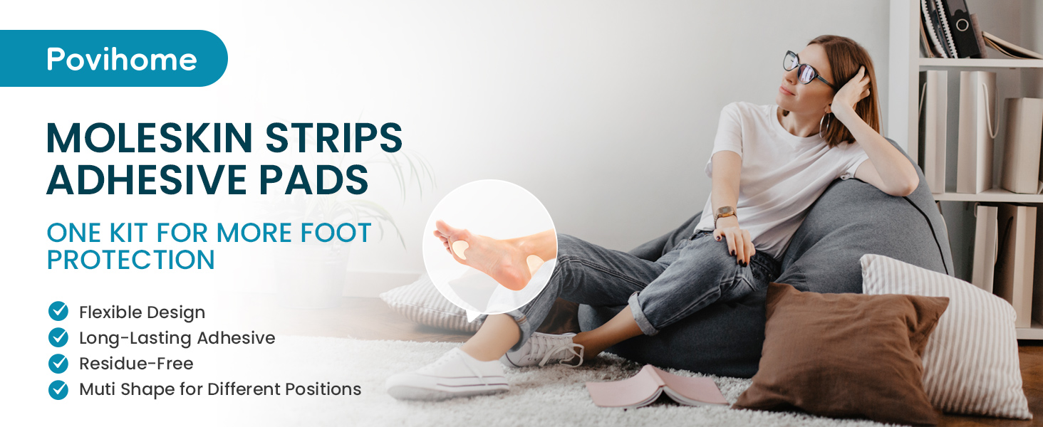 Ideal Blister Prevention - The moleskin padding acts as a protective barrier, reducing direct friction between your foot and shoe, which helps to alleviate discomfort, pain or fatigue from new shoes or prolonged walking, effectively preventing blisters or callus.