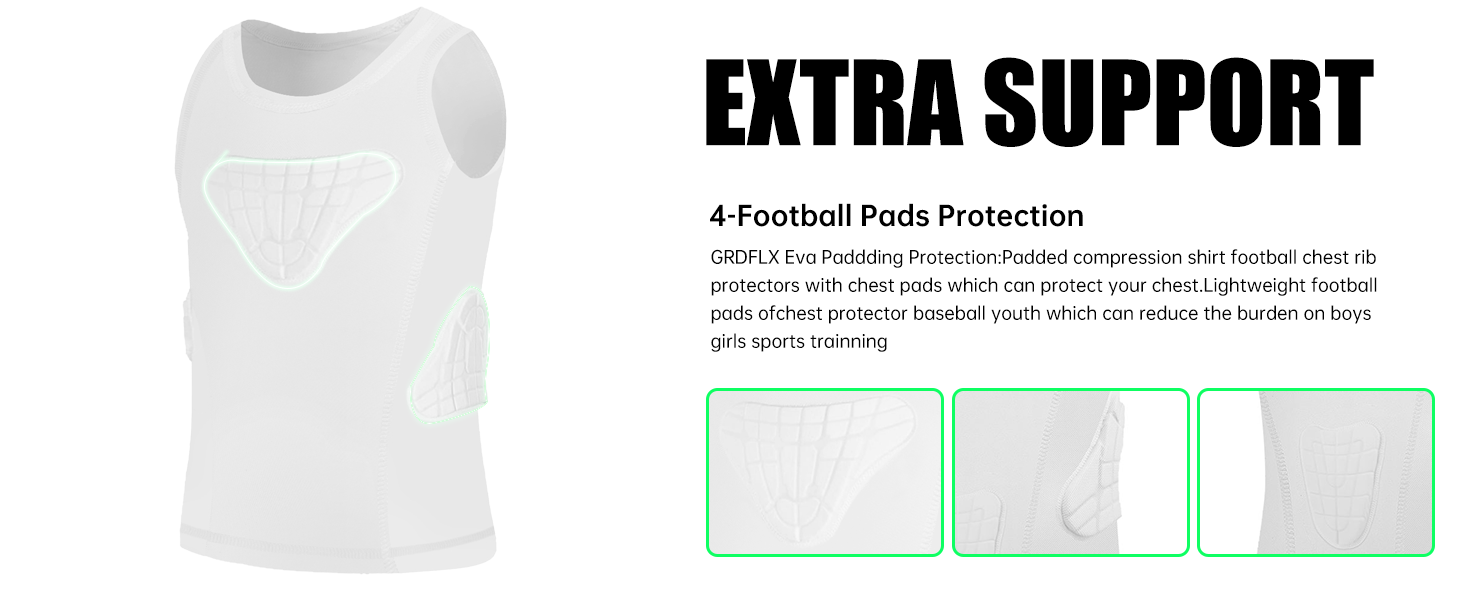 Padded Compression Shirt for Boys,Girls:padded shirt baseball chest protectors provide extra support for your chest,ribs and your back.Lightweight and felixiable chest protector football ribs protectors can be worn inside or outside,and move freely without limit