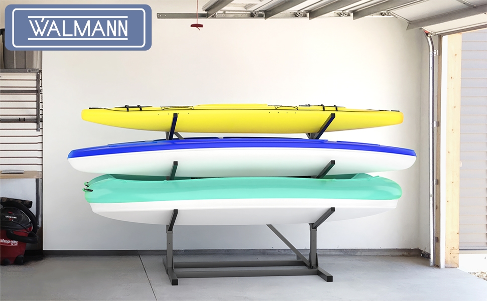 Durable & High Weight Capacity: Constructed from robust metal with a protective black coating, this kayak holder resists rust and corrosion. Each of the 6 tiers can hold up to 110 pounds, providing a total weight capacity of 660 pounds