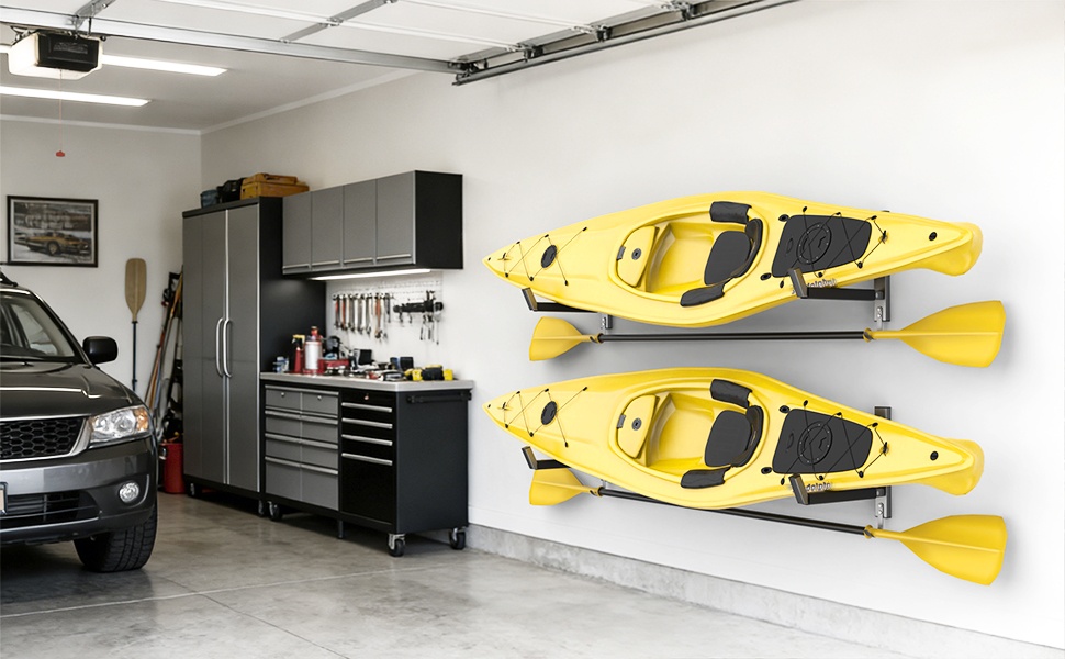 Space-Saving Wall-Mount Design: Keeps kayaks off the floor to free up garage space while keeping your kayak easy to access