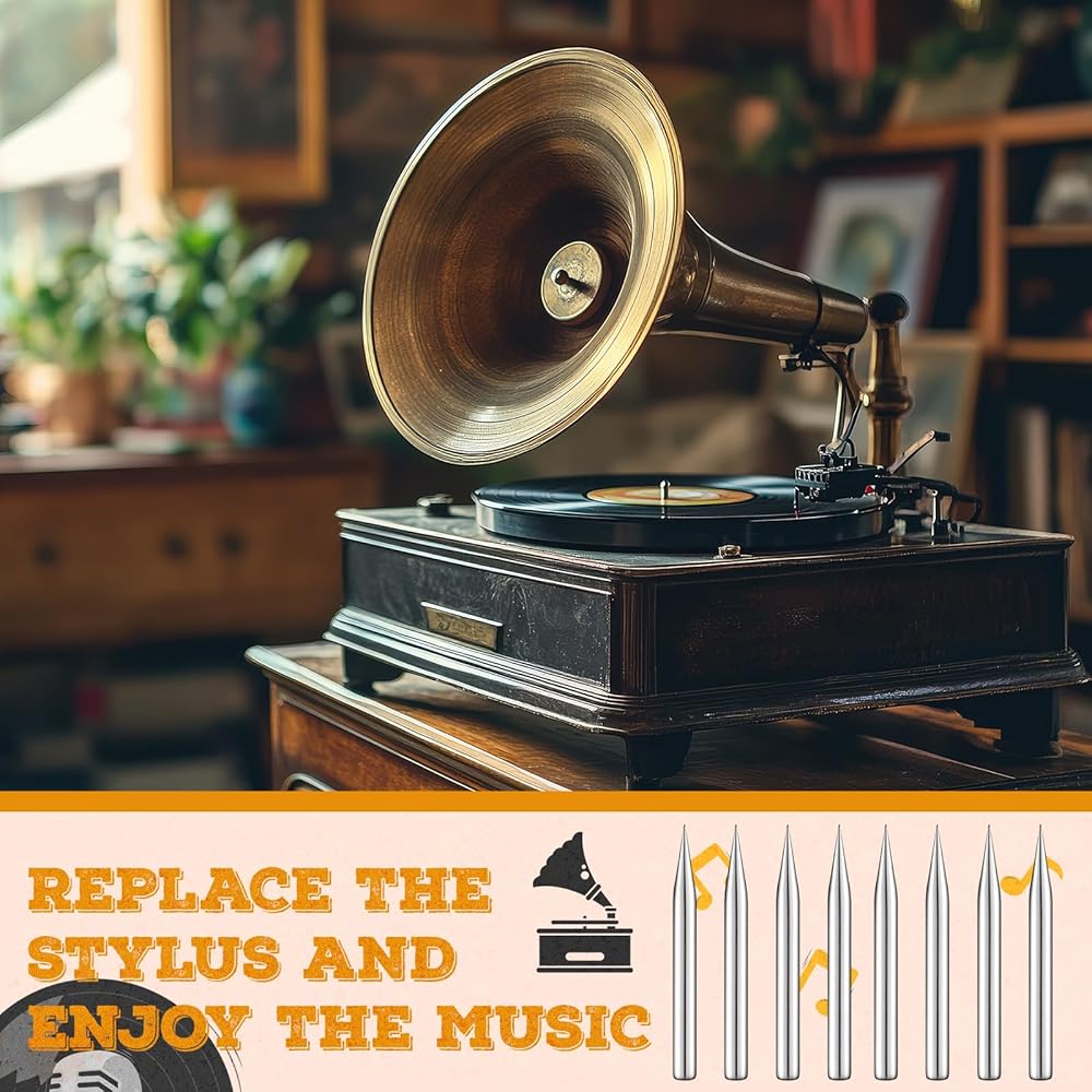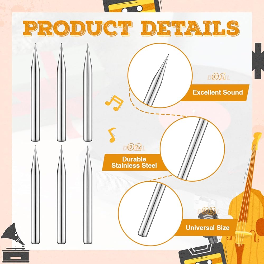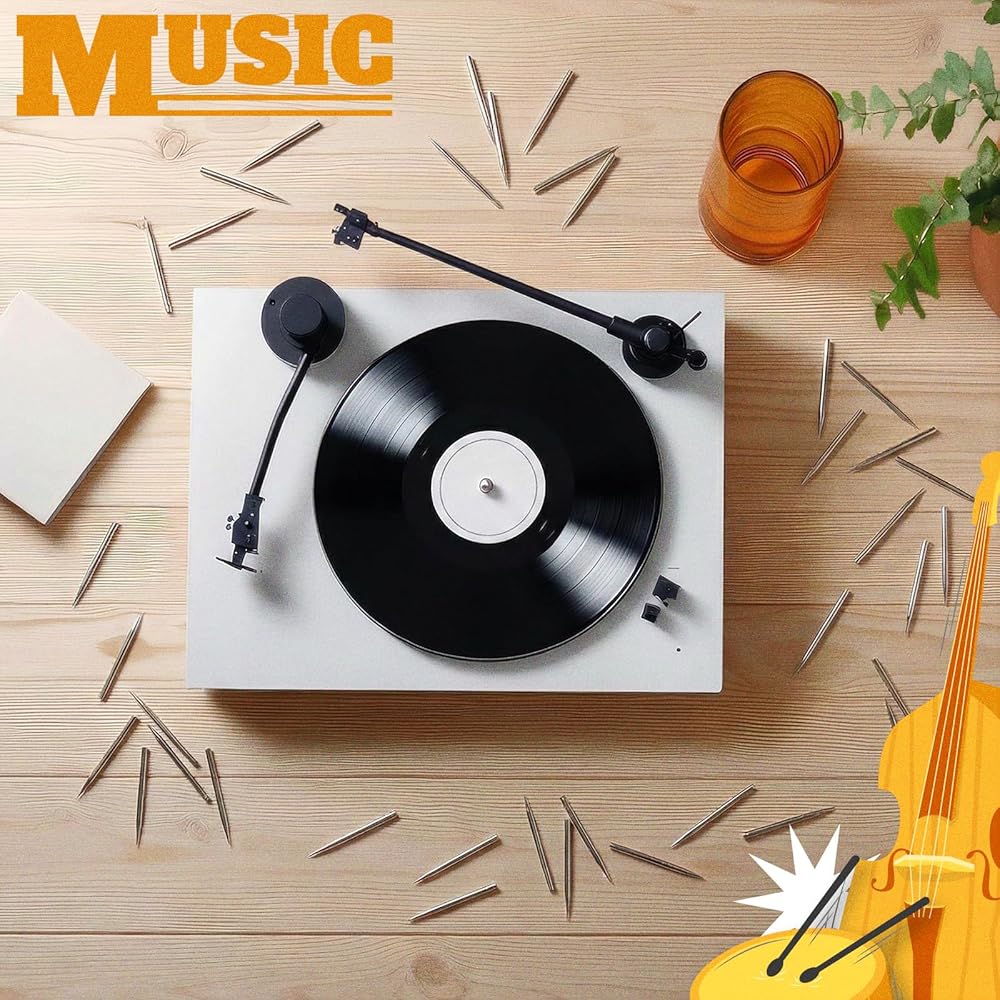 • Spare Option: 100 spare loud tone replacement stylus are provided as a backup, ensuring you don't have to worry about unexpected damage; Whether the stylus wears out or malfunctions during daily use, steel phonograph needles can be easily replaced, ensuring an uninterrupted music listening experience and meeting your needs for listening anytime, anywhere